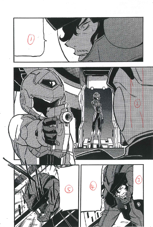 不過一些較血腥的畫面,例如一枝長茅直刺進吉姆士兵的身體,漏出黑色機油,編集長也會覺得太暴力,怕被讀者家長投訴,於是要用擬聲字來「打格」,把畫面某些部分遮蓋。當然編輯和artist的功力夠高,一般讀者絕對看不出畫面曾被修正過。