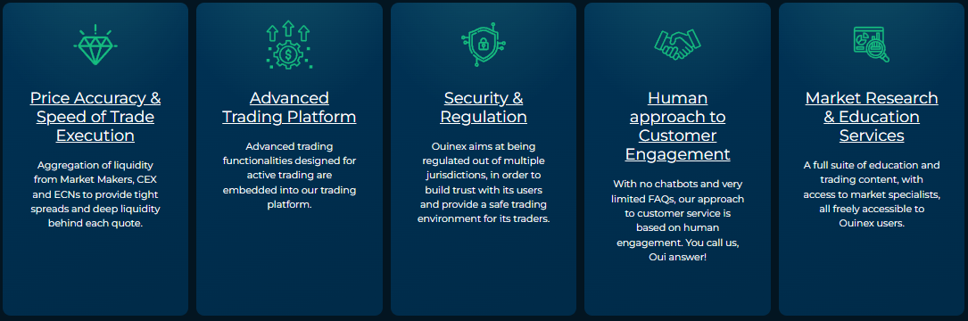Market Research & Education Services : A full suite of education and trading content, with access to market specialists, all freely accessible to Ouinex users.