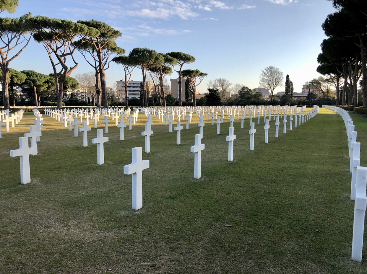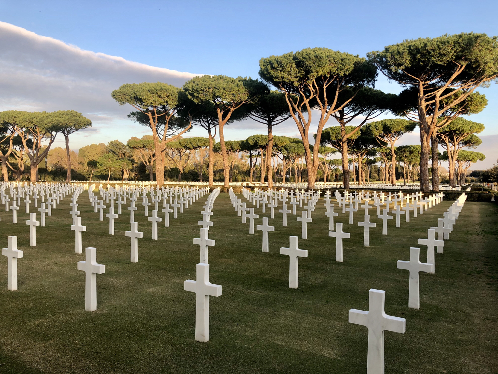 We took a train out of Rome to the port town of Anzio, about an hour long ride, with the intention of having lunch and getting a look at the Tyrrhenian Sea, then we’d head back—it’s our last weekend in Italy. What we didn’t expect to find was the Sicily-Rome American Cemetery and Memorial—I’m glad we did.
