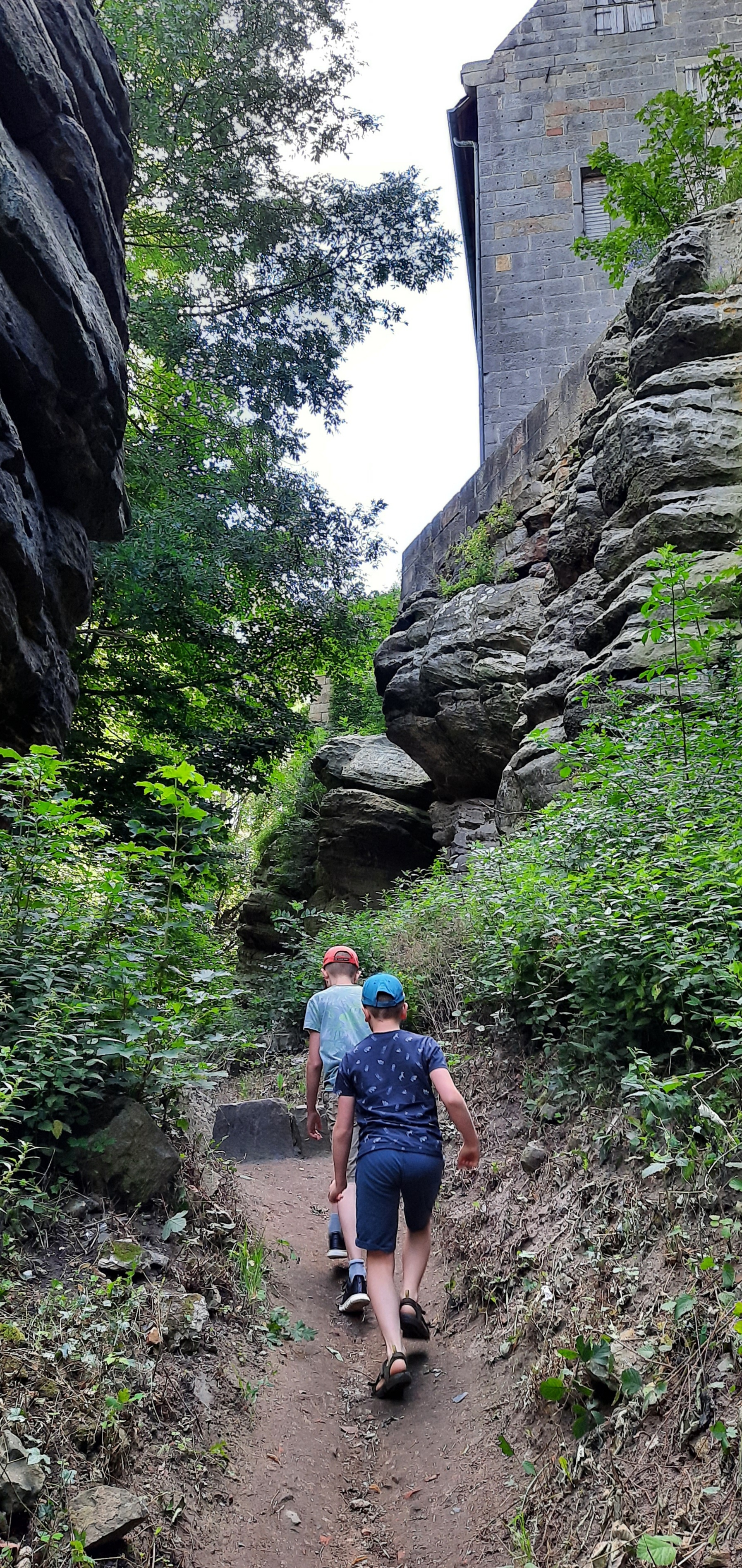 Being from the Netherlands a rocky hill immediately signifies 'abroad' to us. It is fascinating that this castle is only a few kilometers from the Dutch-German border. Just a one and a half hour drive from where we live and we really feel abroad.