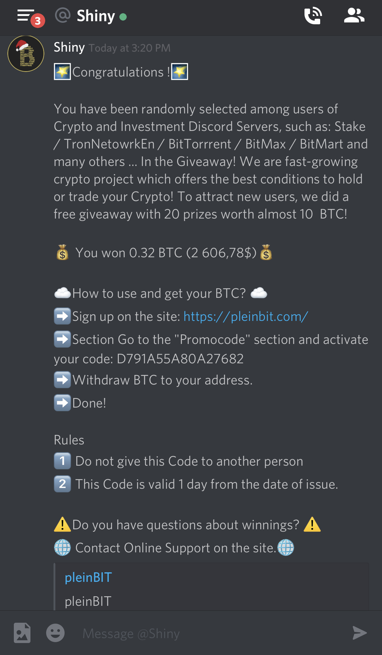A few days ago I received a message on discord from a user I’ve never talked to before who goes by @shiny. This is the full message: