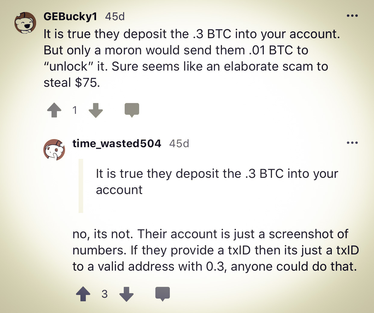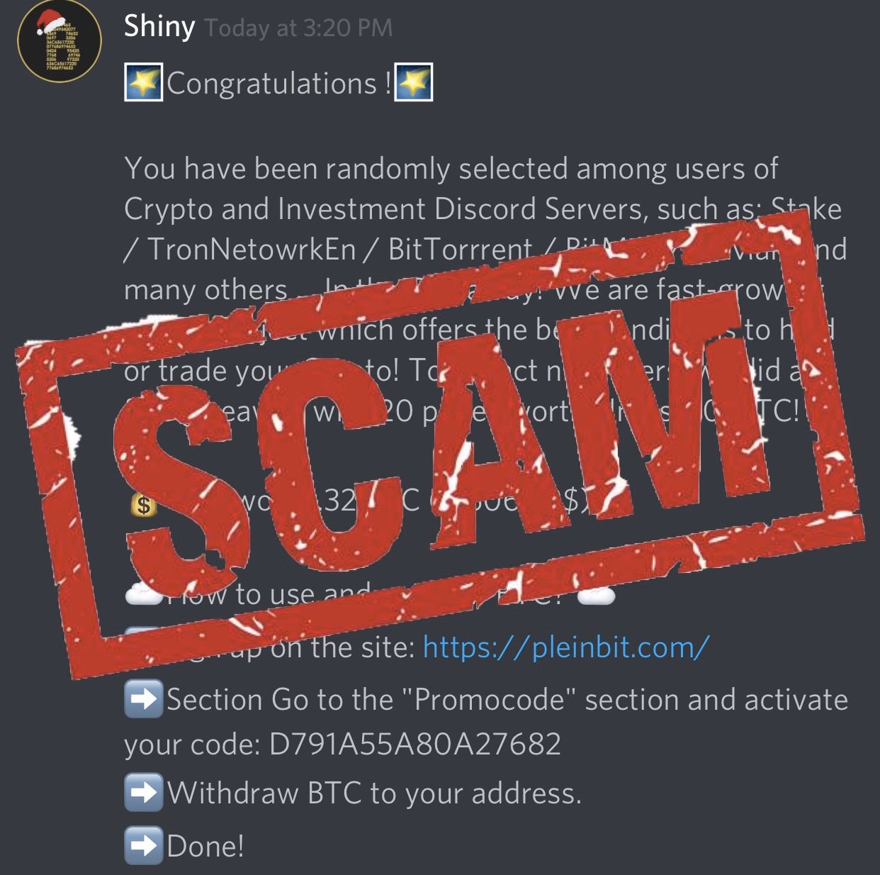 I learned they’re not just stealing information, they’re using the .32 Bitcoin deposited to your PleinBit BTC wallet to steal Bitcoin. After researching this scam for quite awhile, I found the following thread written by time_wasted504 who claims to have received the .3 Bitcoin—that means this user clicked the fraudulent link and entered the access code provided by the scammer. Read the response to time_wasted504 written by GEBucky1: