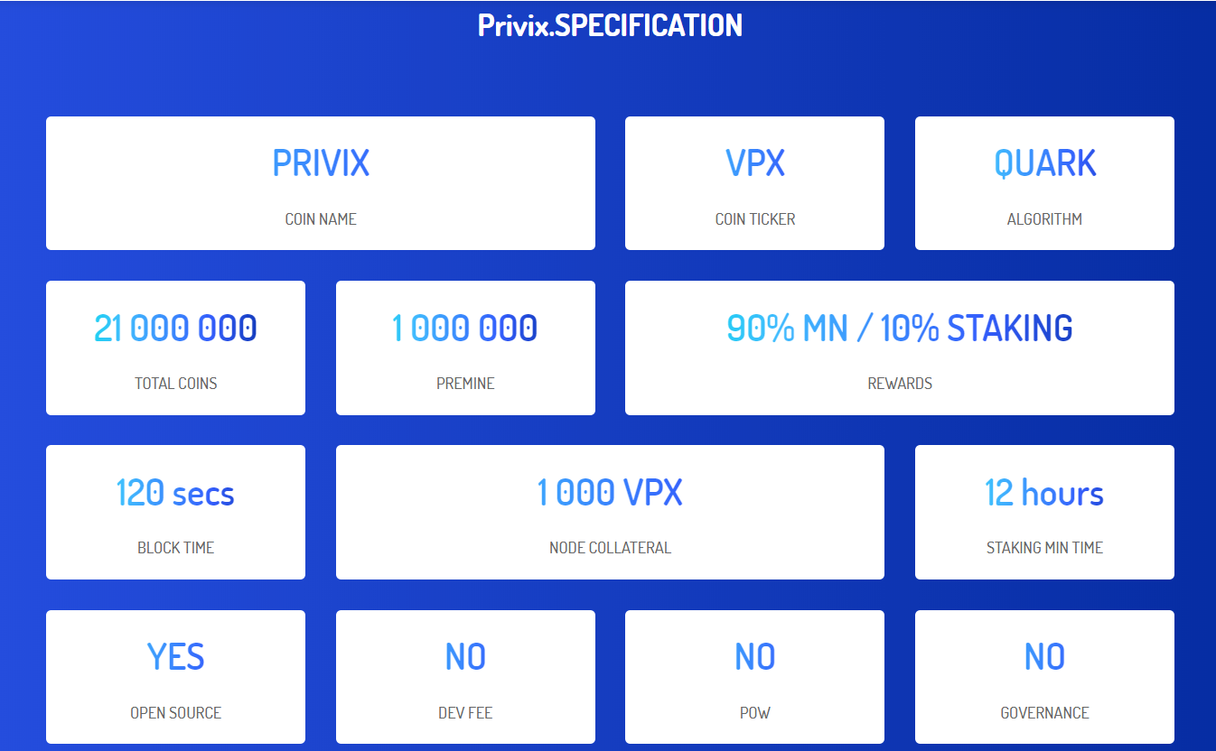 Like other projects built on the blockchain network, Privix also has coins that they built on their own blockchain network called PVX Coin and have a total supply of 21 million coins. With only a small amount of total supply, it will certainly affect the price demand for these coins in the future, because technology will grow in the future. While the specifications of the PVX coin can be seen below