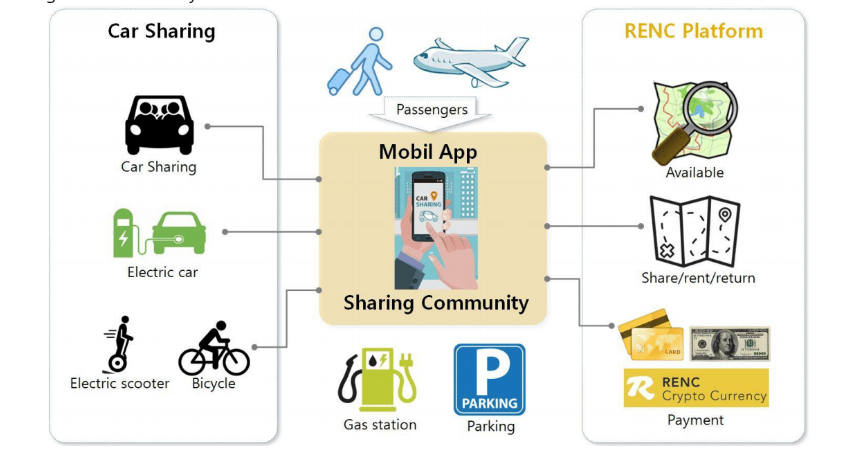 RENC blockchain project started with interest in a shareable vehicle which can be available to share their resources with each other on the mobile platform.