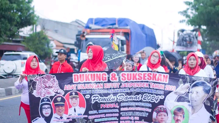 Arak-arakan digelar dengan melibatkan aparatur desa, dan warga sipil.