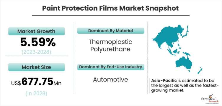 According to Stratview Research, the paint protection films market was estimated at USD 487.6 million in 2022 and is likely to grow at a CAGR of 5.59% during 2023-2028 to reach USD 677.75 million in 2028.