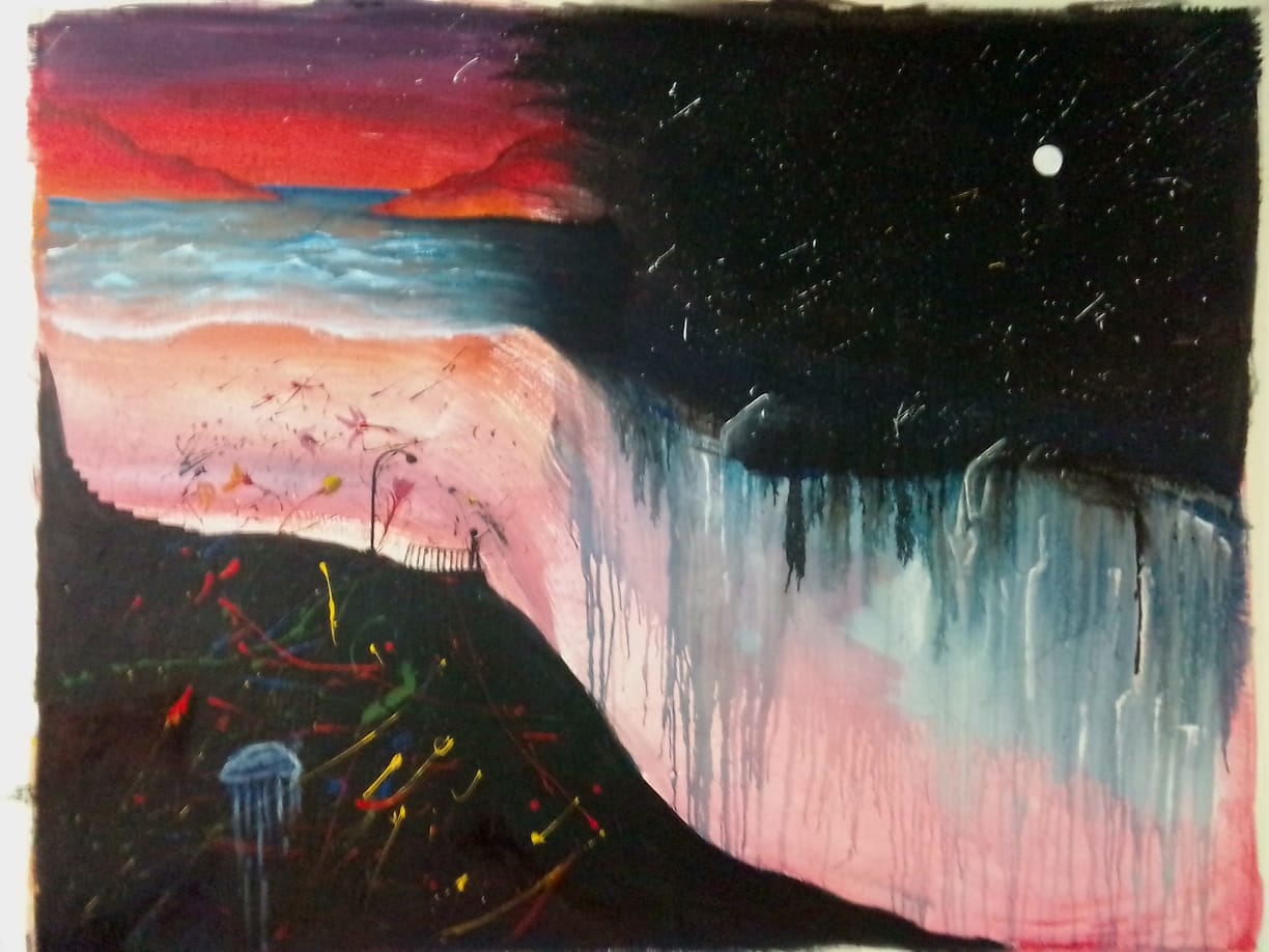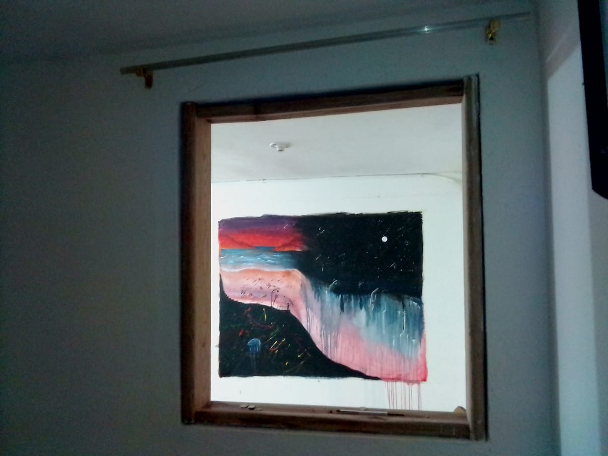 Lo verde se debe al color de las montañas que estaba a simple vista y a lo surreal del momento, ya que en una versión mas estable de mi, sabia que el momento iba a pasar si me dejaba ser a través de la pintura.