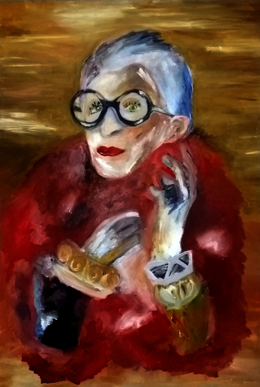 Dedicate my first attempt with oil painting to the beautiful fashinista Iris Apfel which I admire her for her style and character.