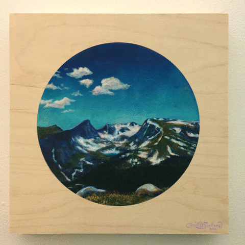 I took one of my favorite paintings from last year, cut up and manipulated the clouds in PhotoShop, and created this simple GIF animation. I feel like the moving clouds helps to set the scene more in the space and makes it seem more like you're peering in from a hole. It certainly brings it to life. The original is a 12" x 12" acrylic on cradled birch panel.