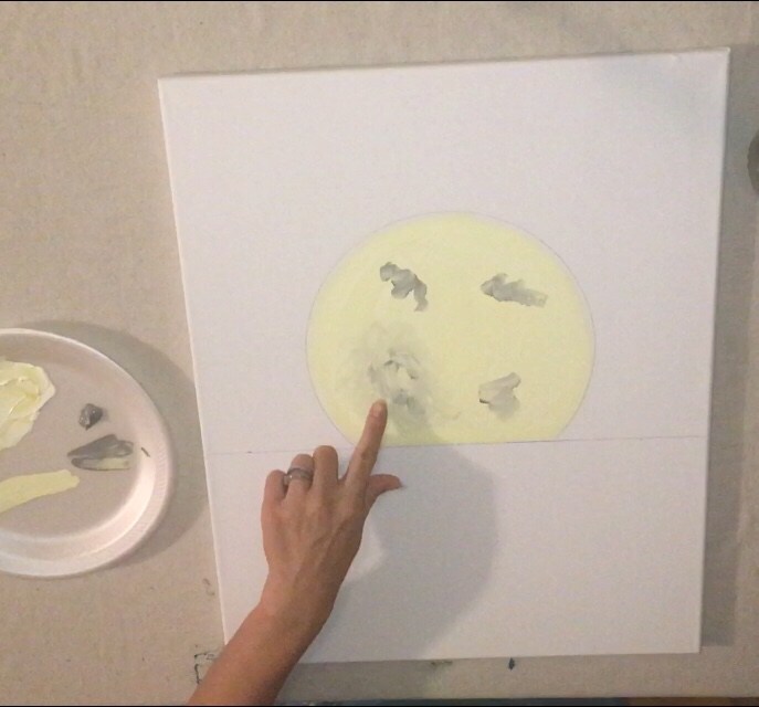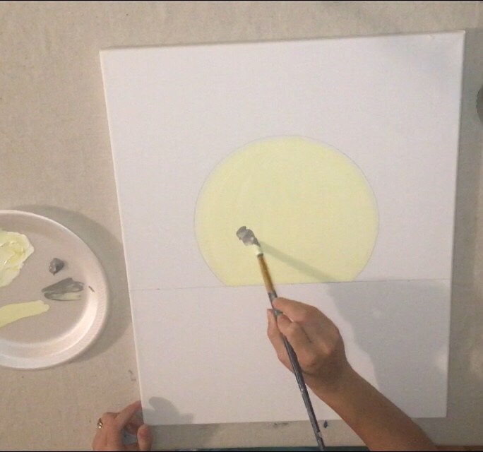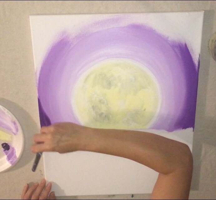 Add dioxazine purple as you get close to the edge of the canvas. Carefully blend the dioxazine purple into the brilliant purple.