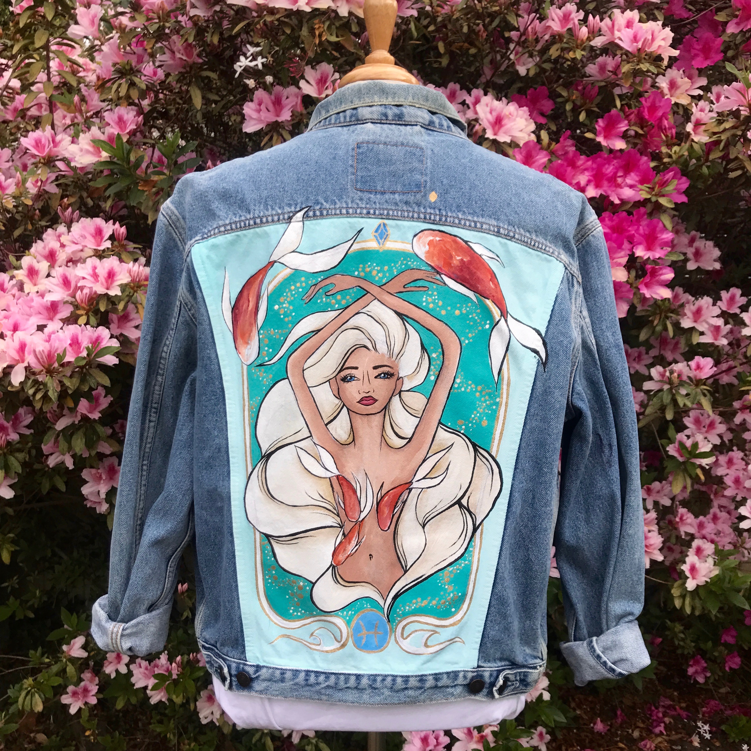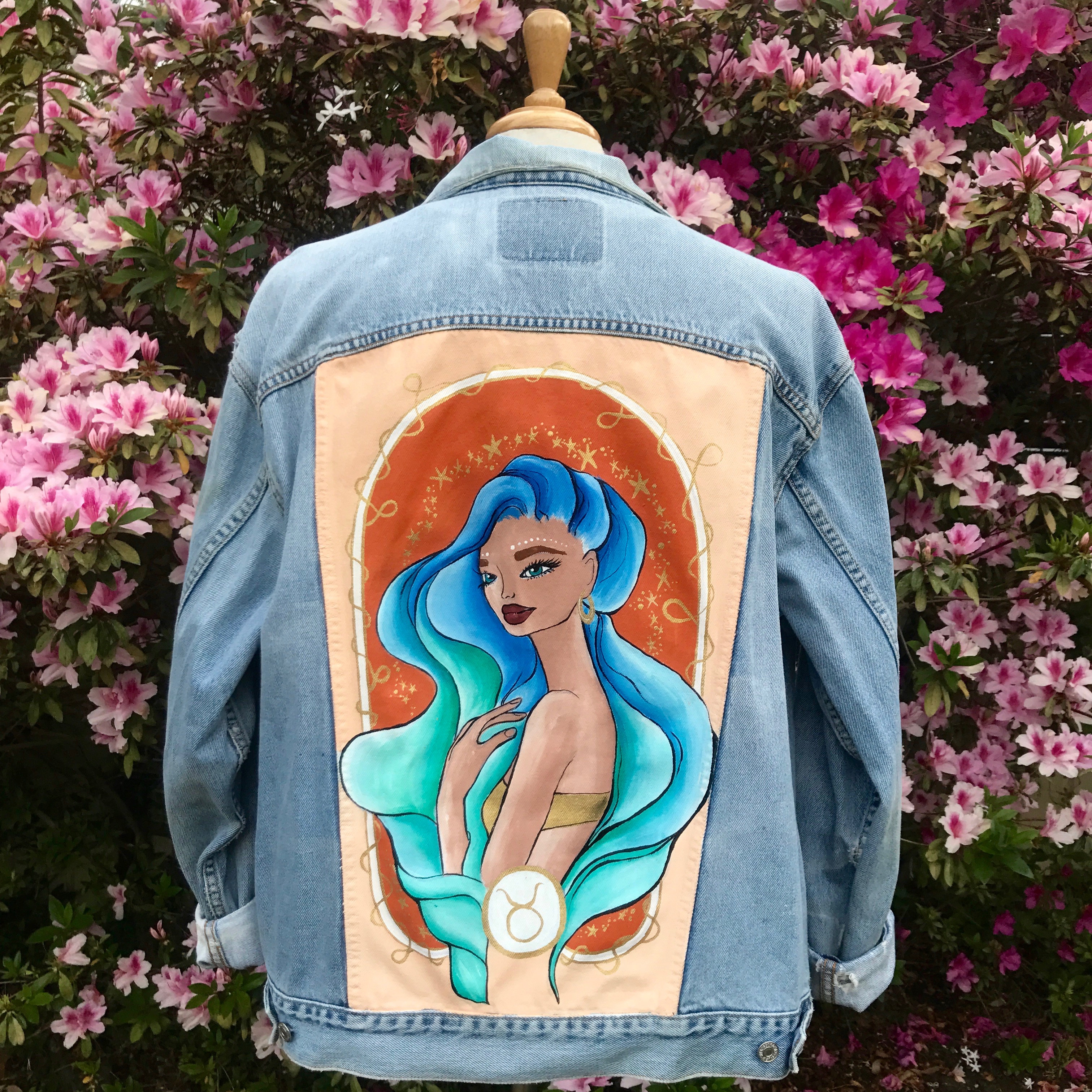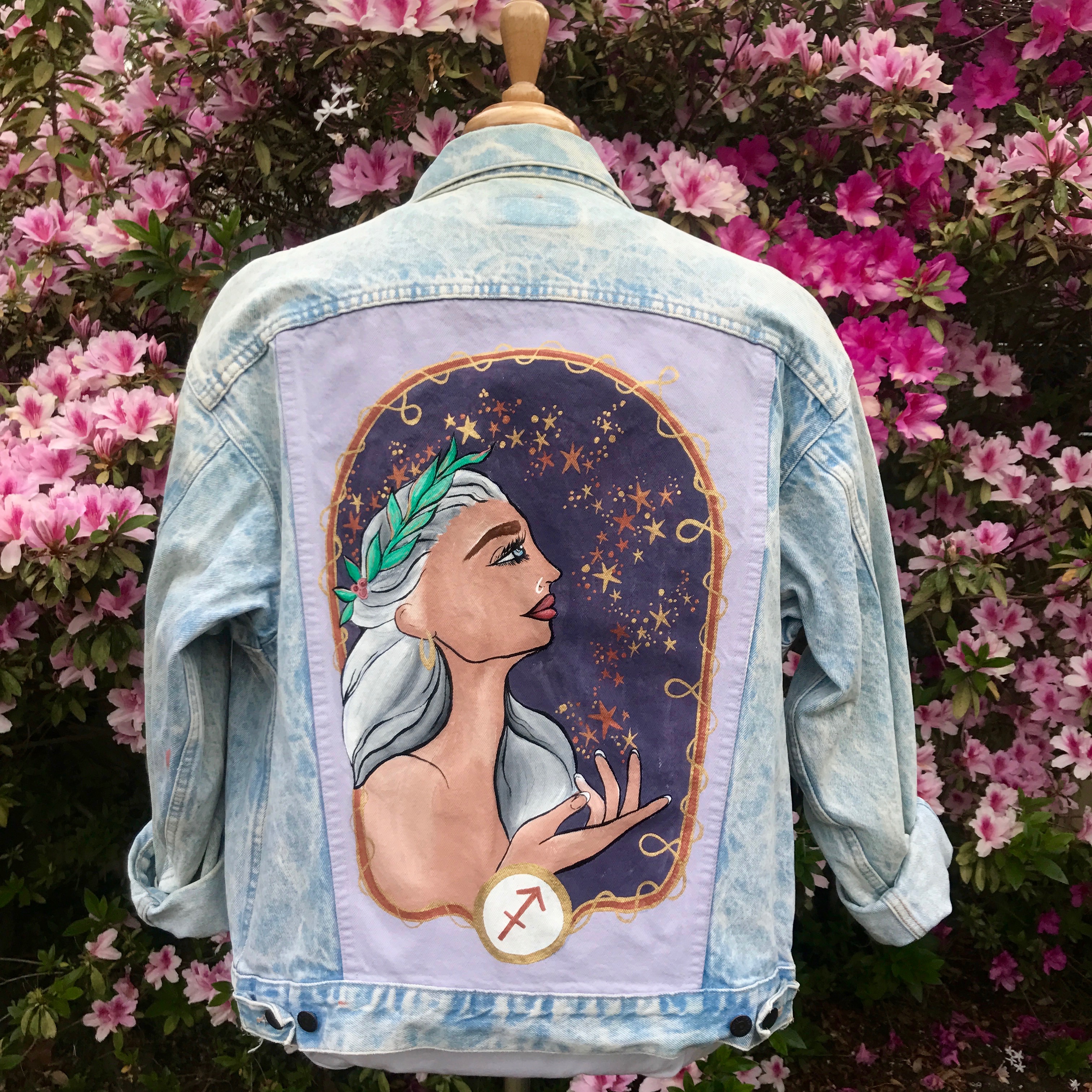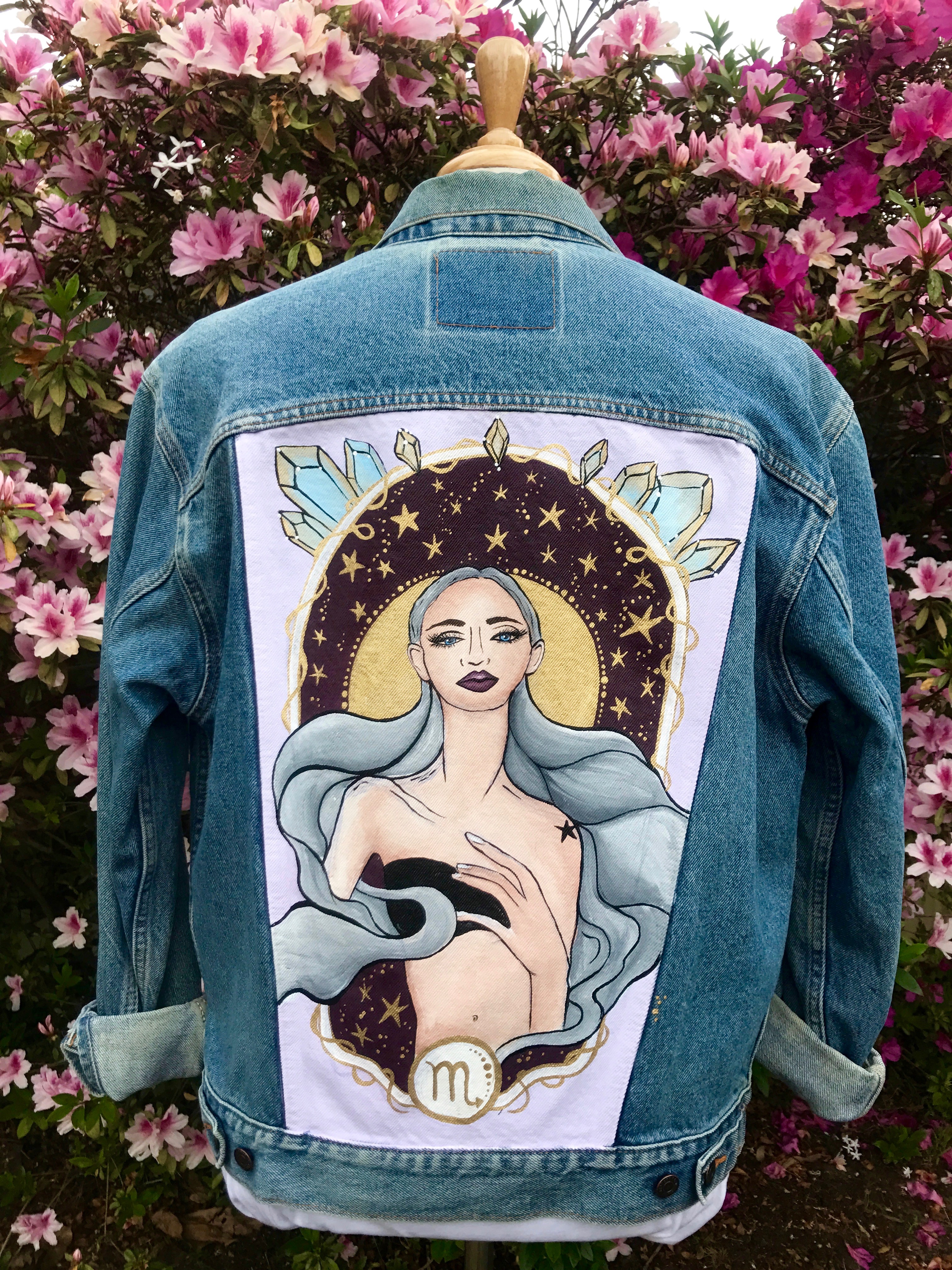 I find it a little funny that one of my last posts on here from a few years ago was all about a new Zodiac Collection I was working on....I had barely painted any denim jackets at that time and was still mostly painting on paper using watercolour. Now, after about 30 collections of denim jackets later, as I zone back into this site, I am laughing because the new painted denim collection I JUST finished IS A ZODIAC COLLECTION!
