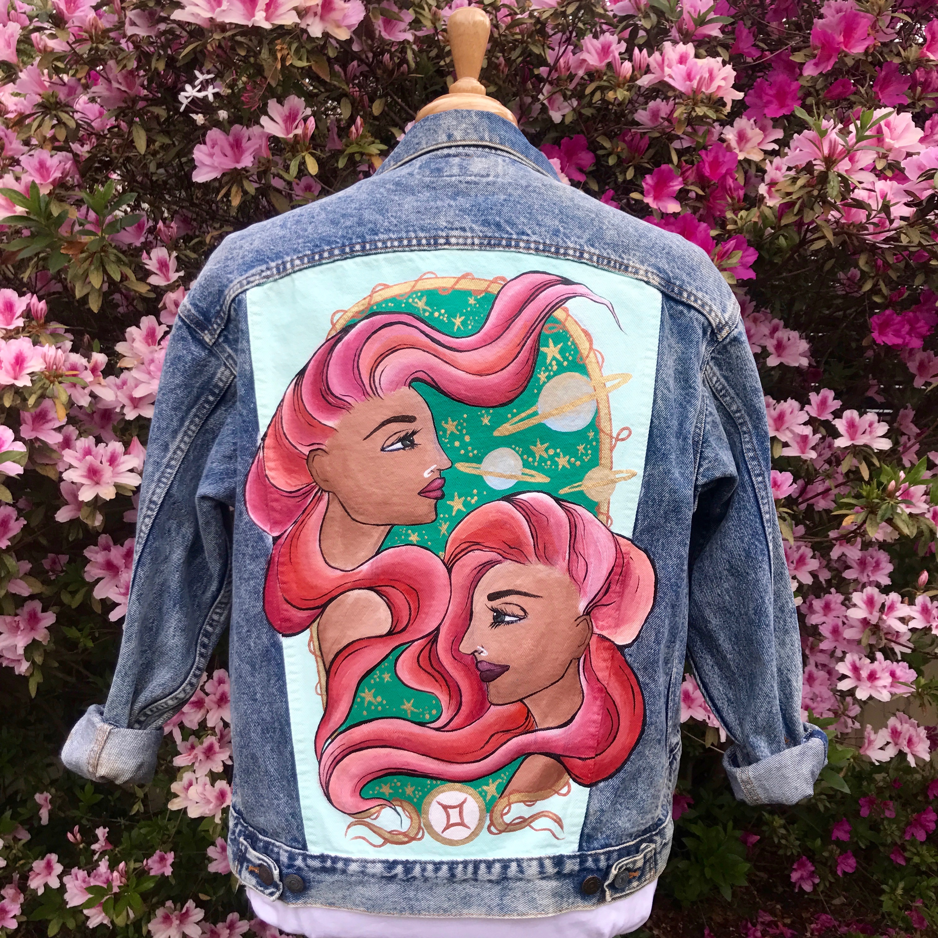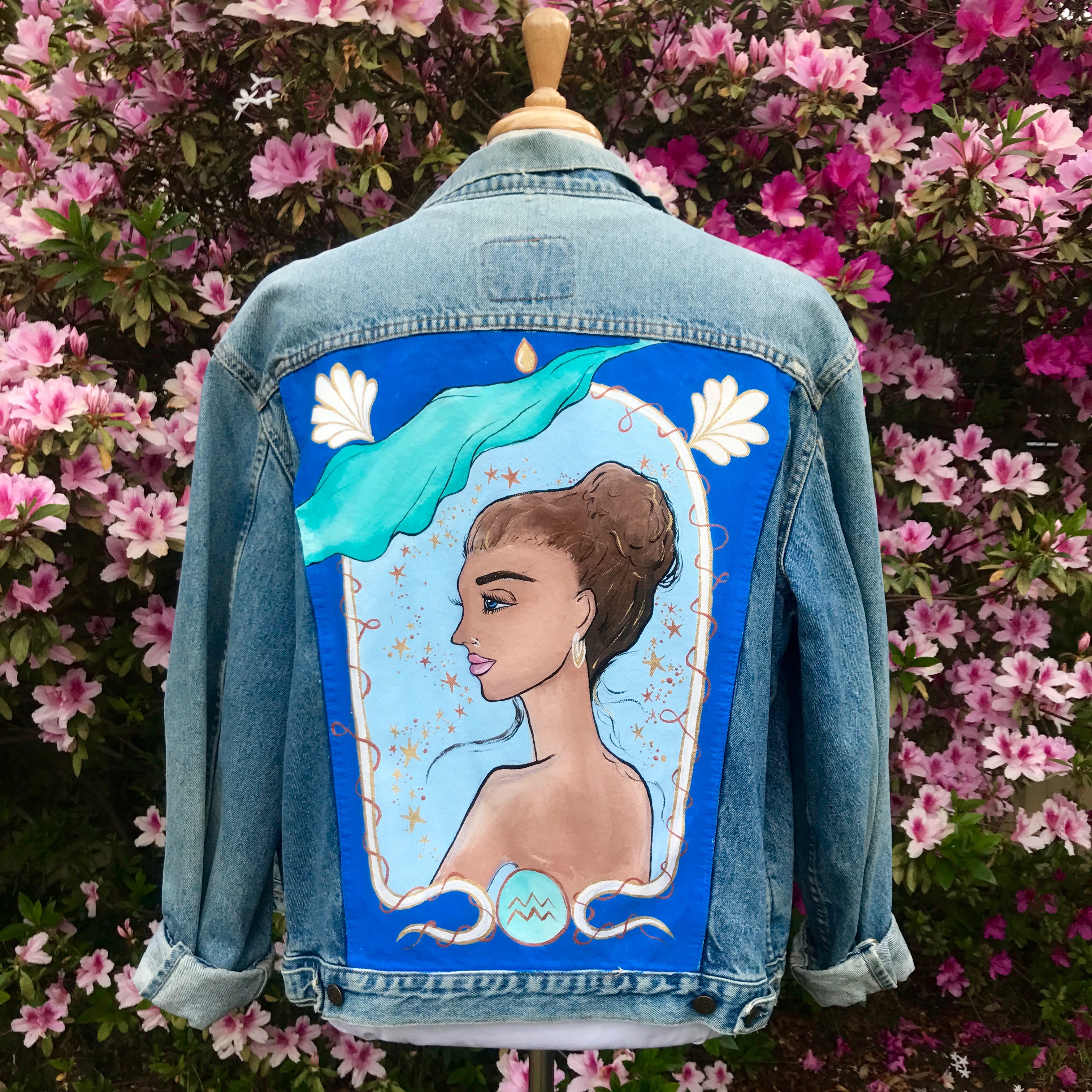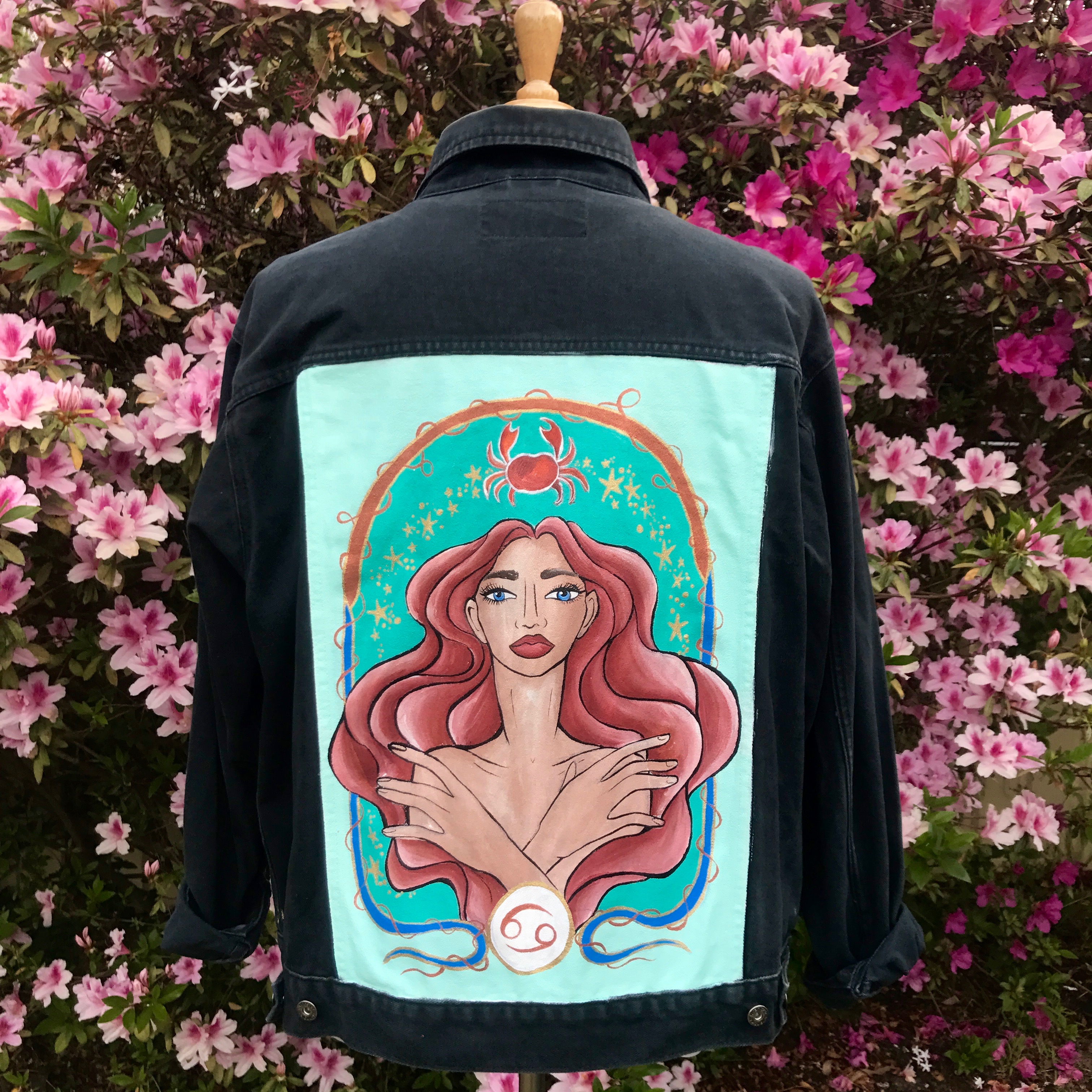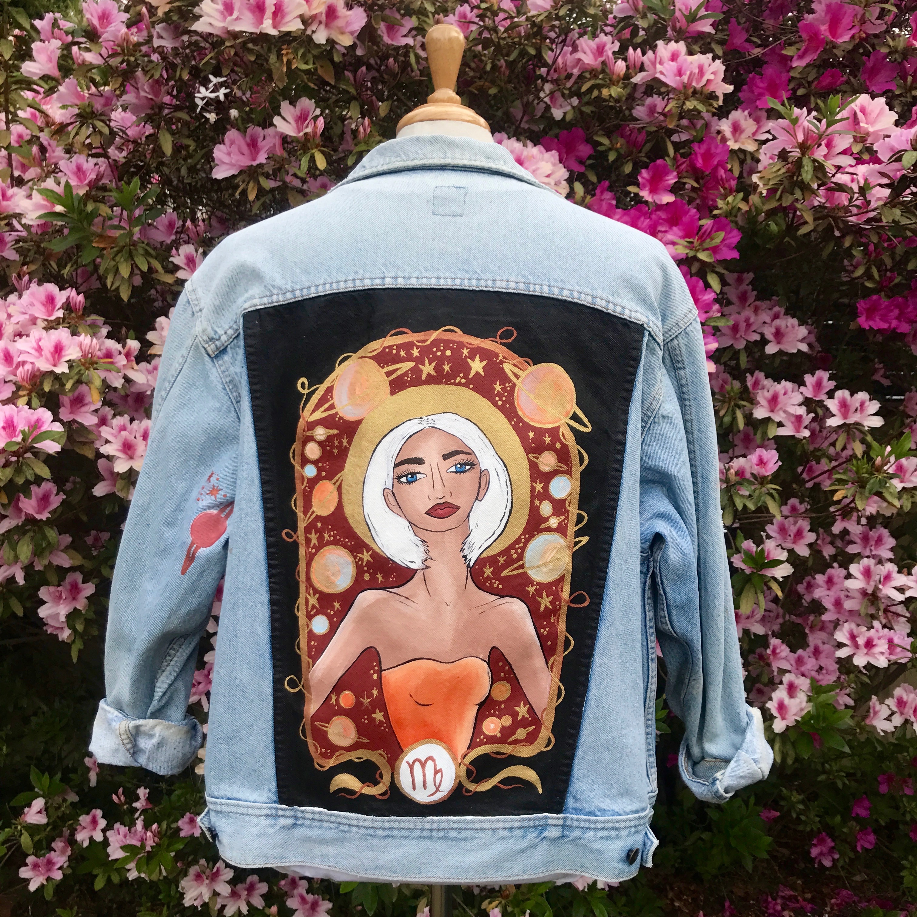 I find it a little funny that one of my last posts on here from a few years ago was all about a new Zodiac Collection I was working on....I had barely painted any denim jackets at that time and was still mostly painting on paper using watercolour. Now, after about 30 collections of denim jackets later, as I zone back into this site, I am laughing because the new painted denim collection I JUST finished IS A ZODIAC COLLECTION!