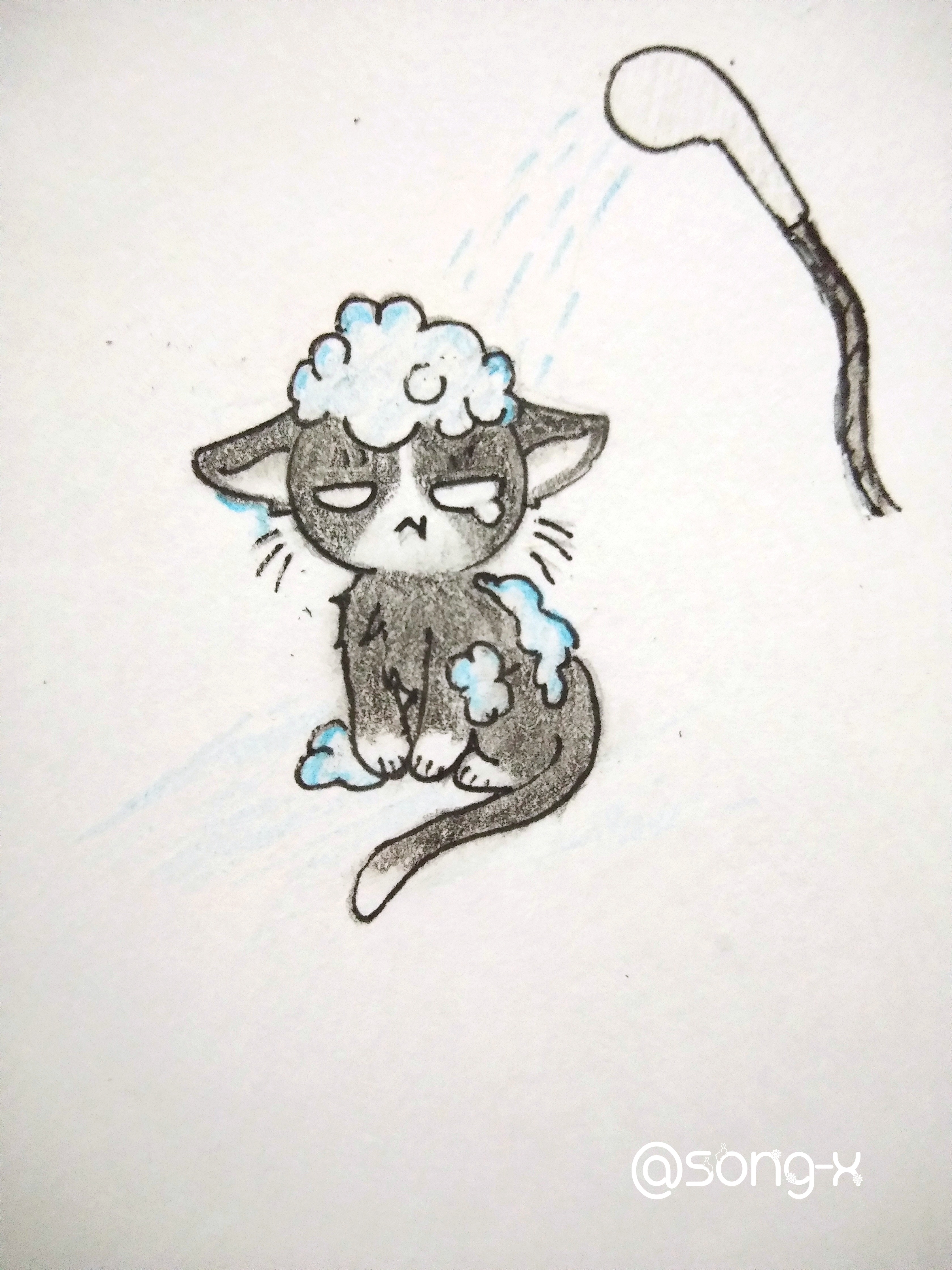 元气日常:洗澡(1)song-x (40)in #painting • 8 years ago (edited) 炸毛ing... 猫猫:放开我!! 给猫咪洗澡真不是件容易的事啊~ cat"Let me go!!" It's not easy to bathe a cat. #busy #cat