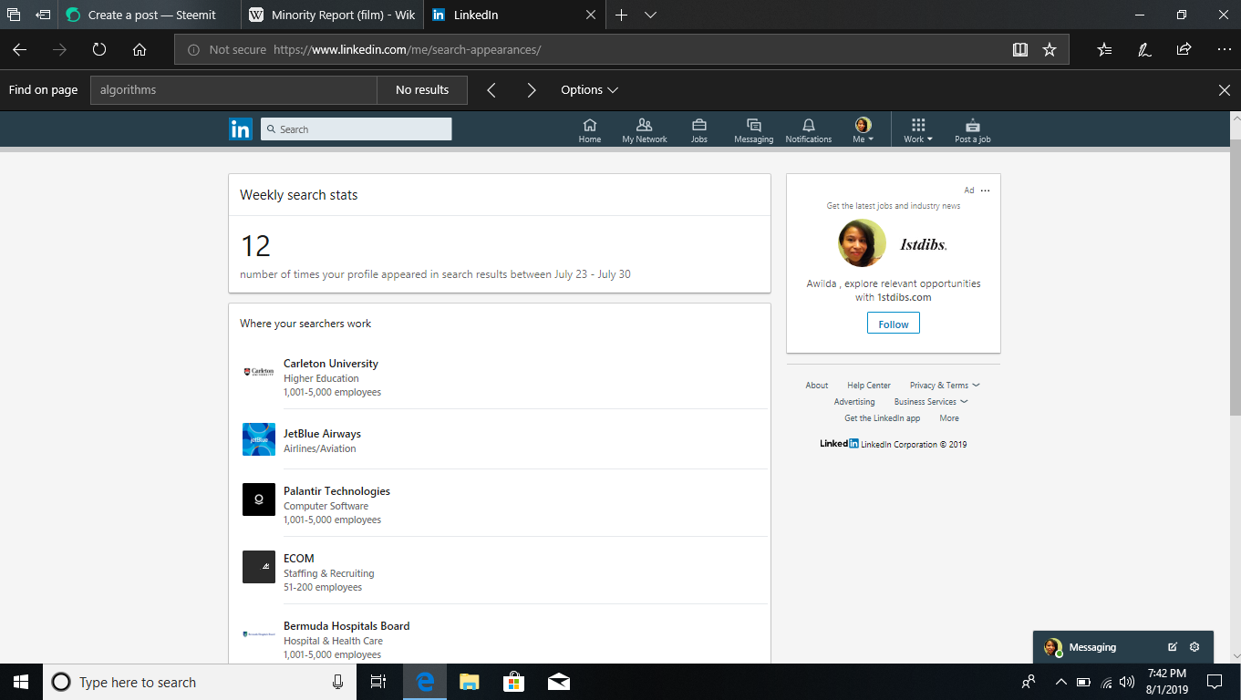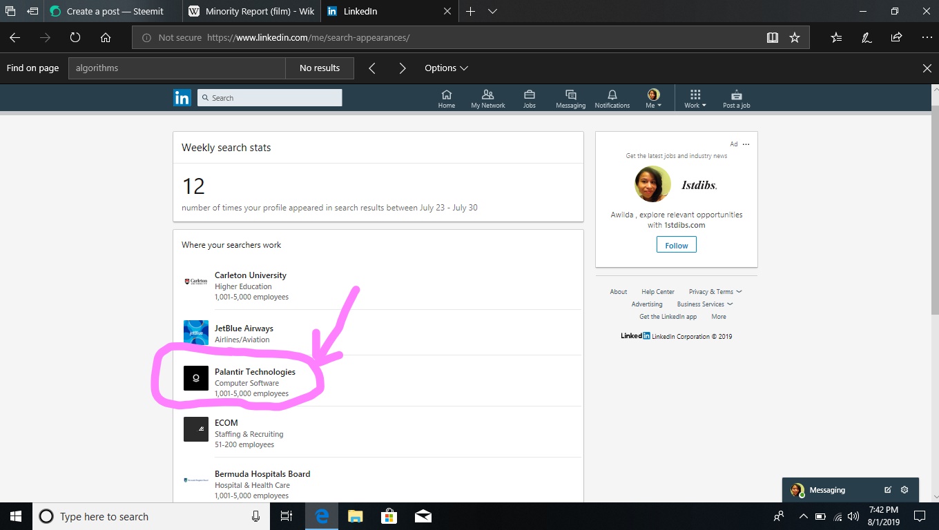 According to The Gaurdian, homeland security is monitoring the social media accounts of bloggers, media influencers, and journalist. If you’ve read my previous post, which discussed a software company by the name Palantir Technologies, coupled with blockchain technology and “the real life minority report.” More specifically, Peretti, “Palantir, the CIA-backed startup, is Minority Report come true. It is all-powerful, yet no one knows it even exists.” Shhh, nobody is supposed to know you exist. But, for some reason the algorithms are at work and I can’t stop laughing. It’s not me. Perhaps, the unconscious bias of the programmer.