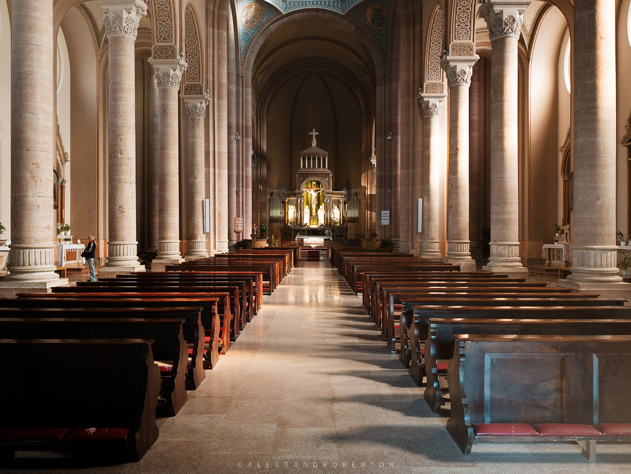 L'impatto visivo è stato forte, il colonnato è imponenete e scandisce la navata portando lo sguardo verso l'altare.
