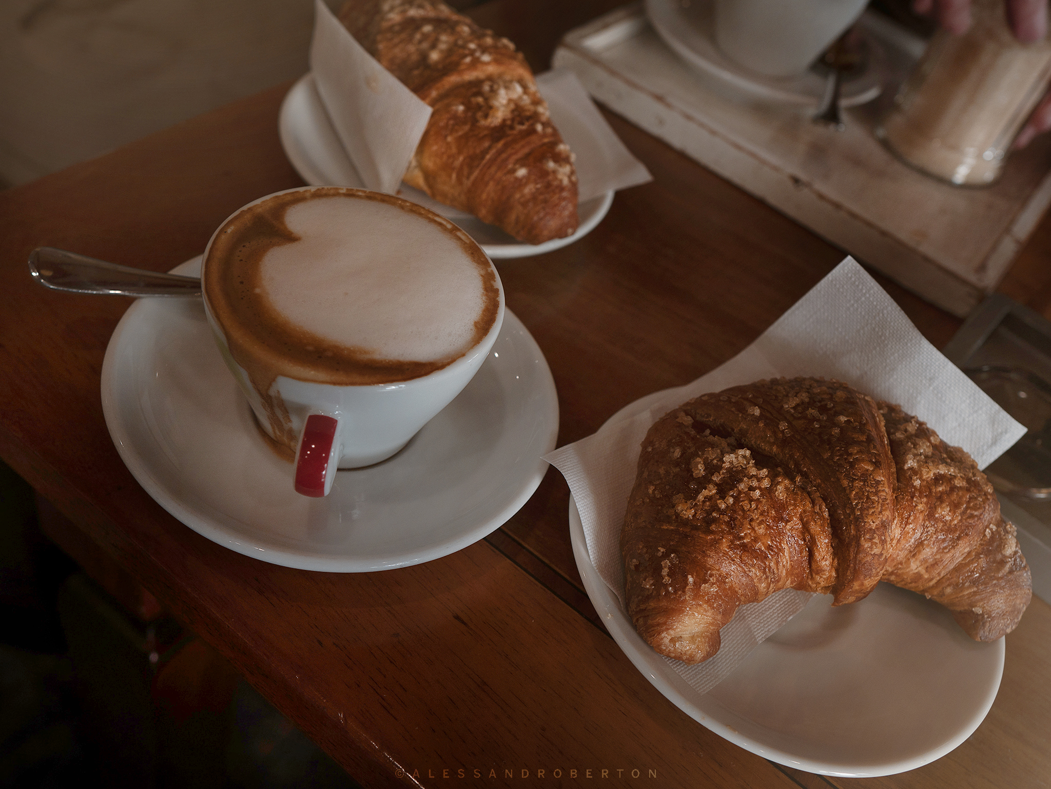 Il profumo proveniente da una caffetteria ci ha invitati a sederci e fare uno spuntino così abbiamo deciso di prendere un capuccino e un croissant...