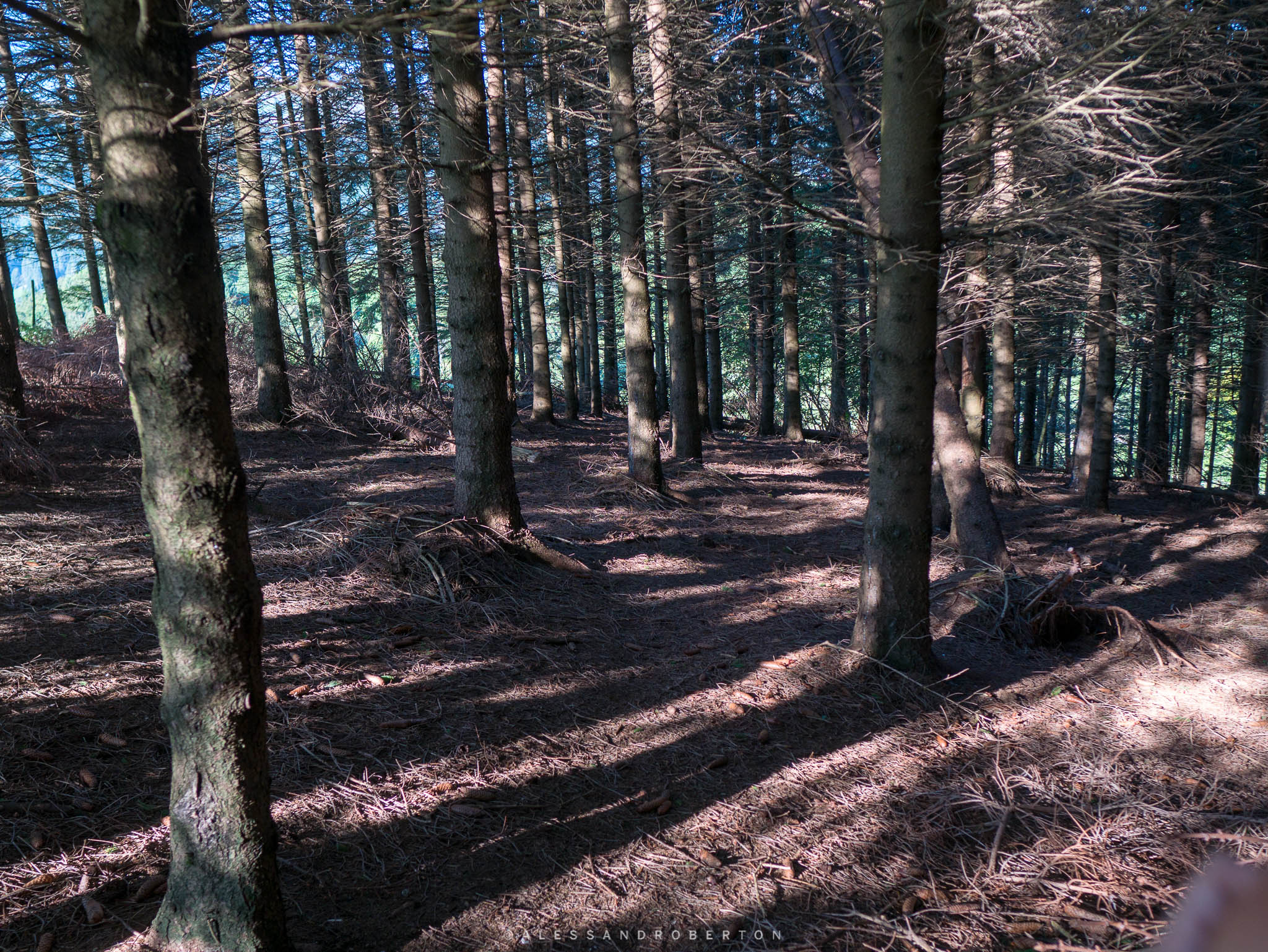 This wood was really thick, it was a forest of fir trees, very close, it filtered little light and in fact on the ground there were only pine needles.