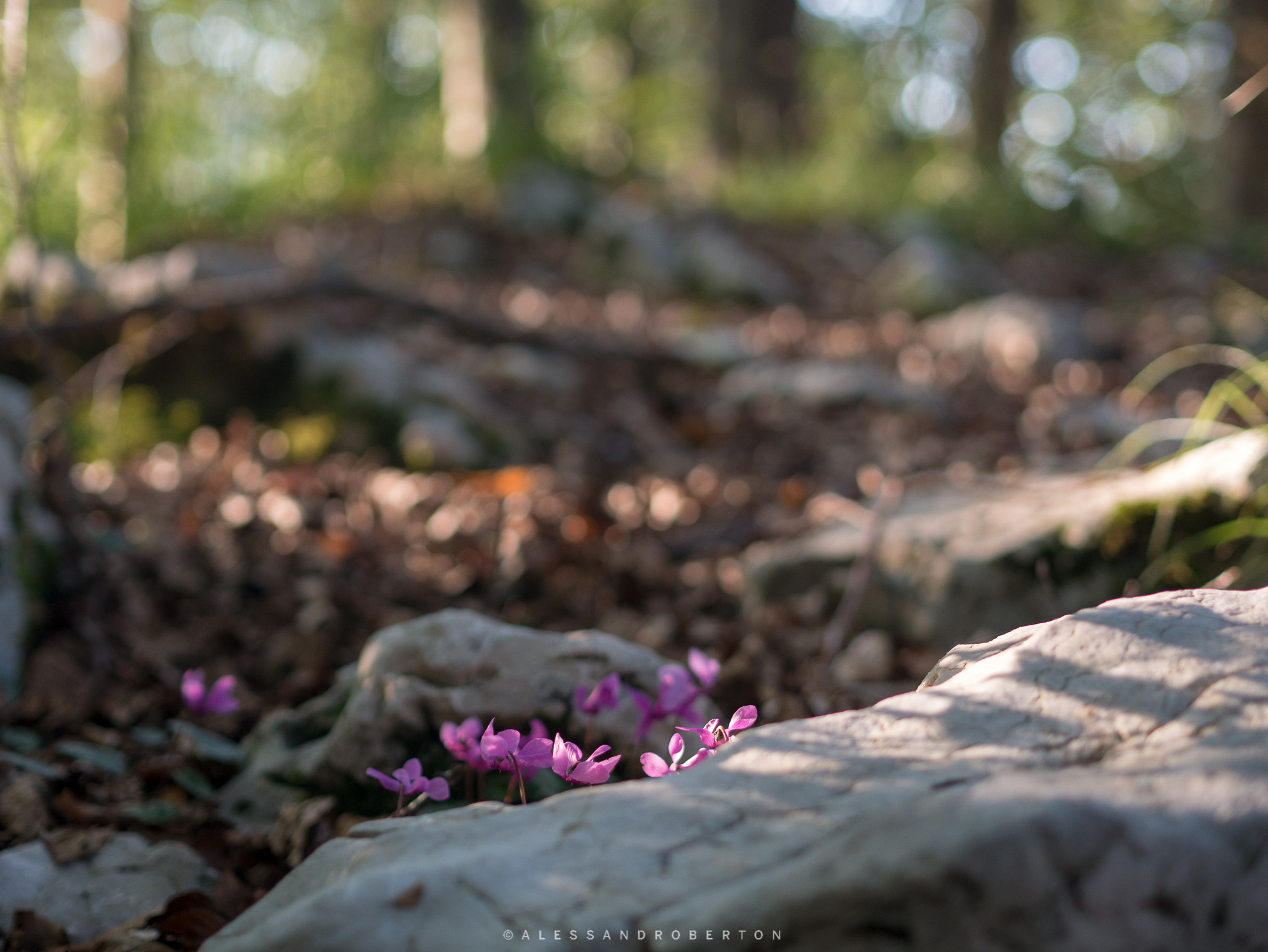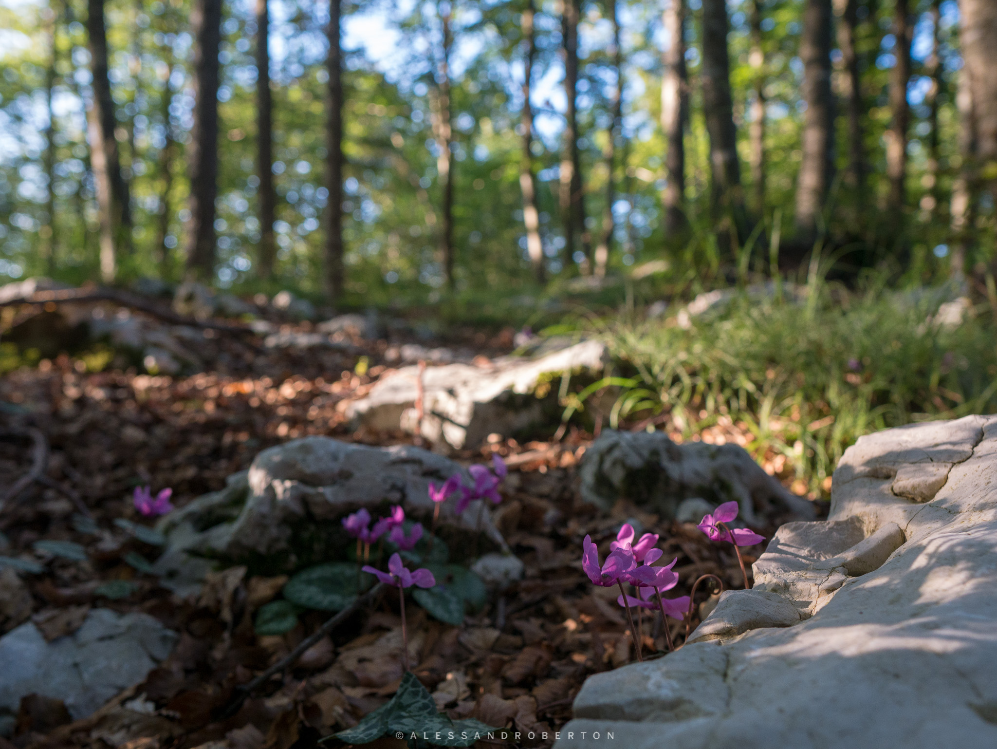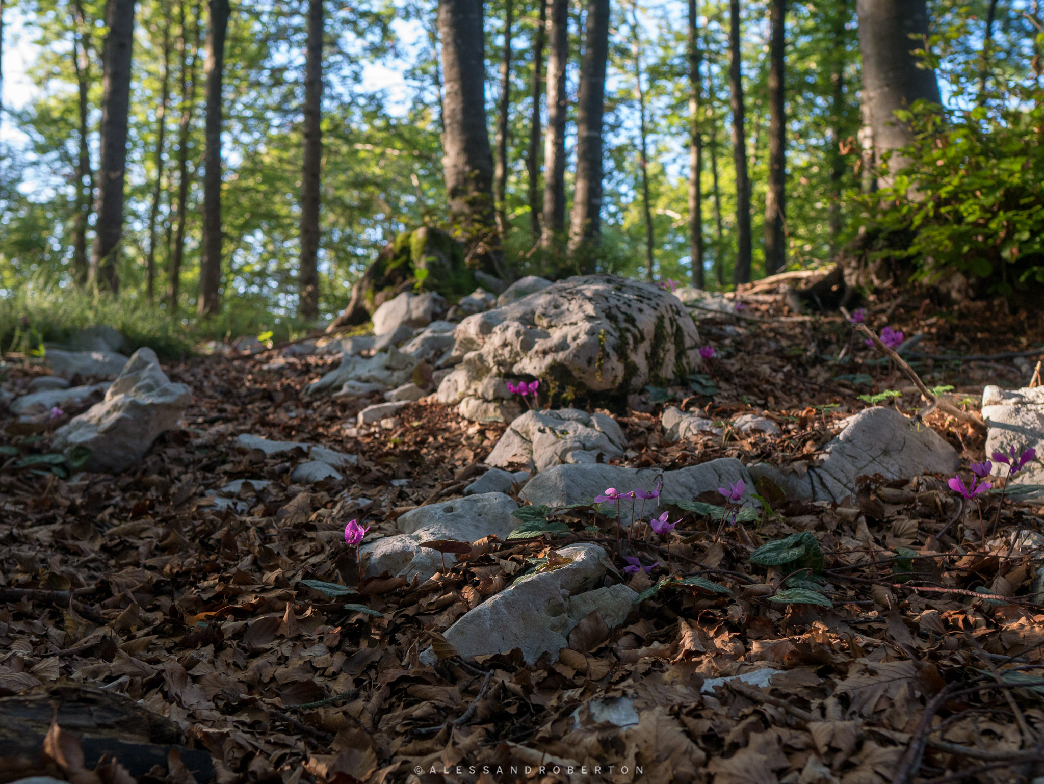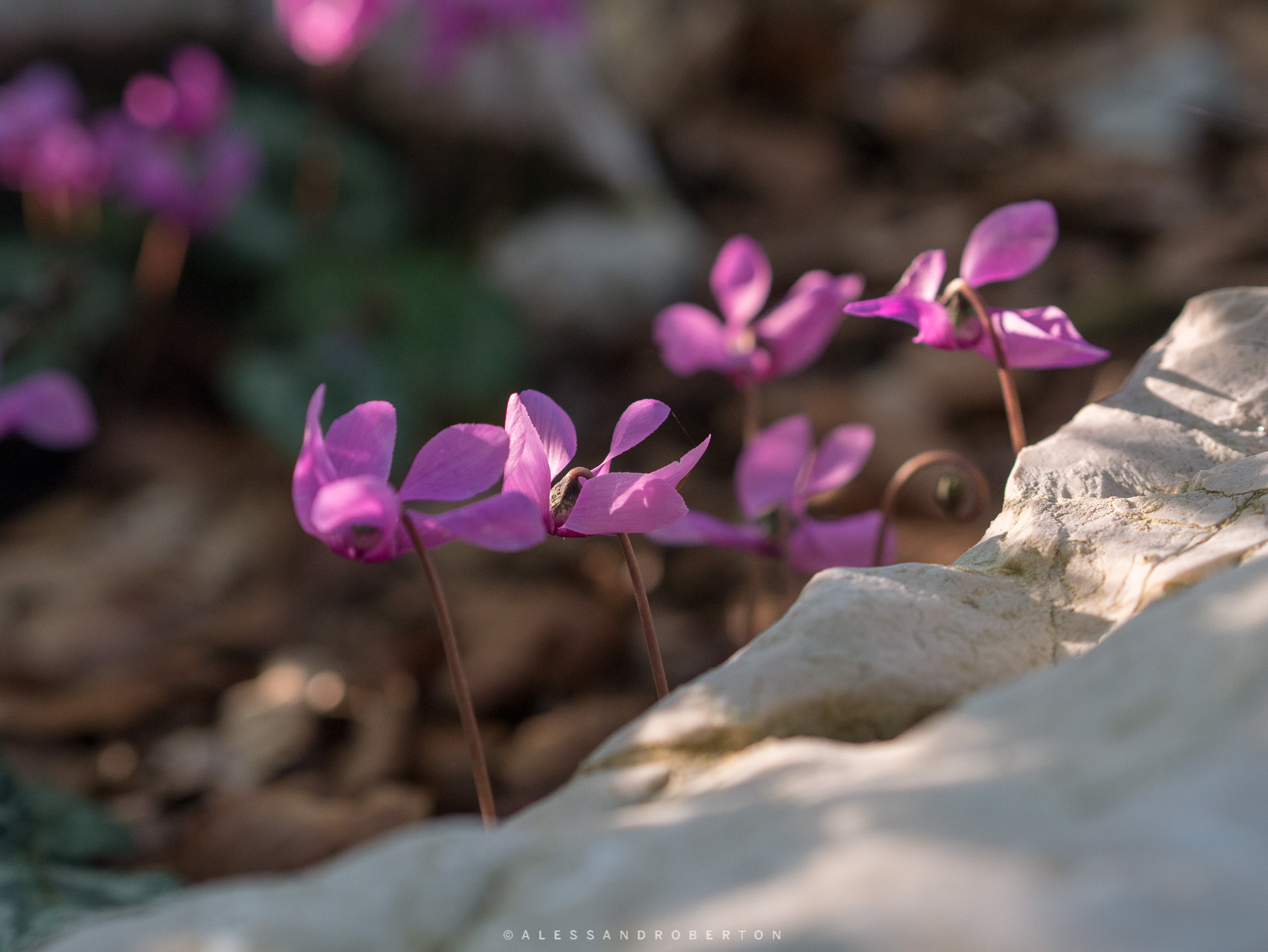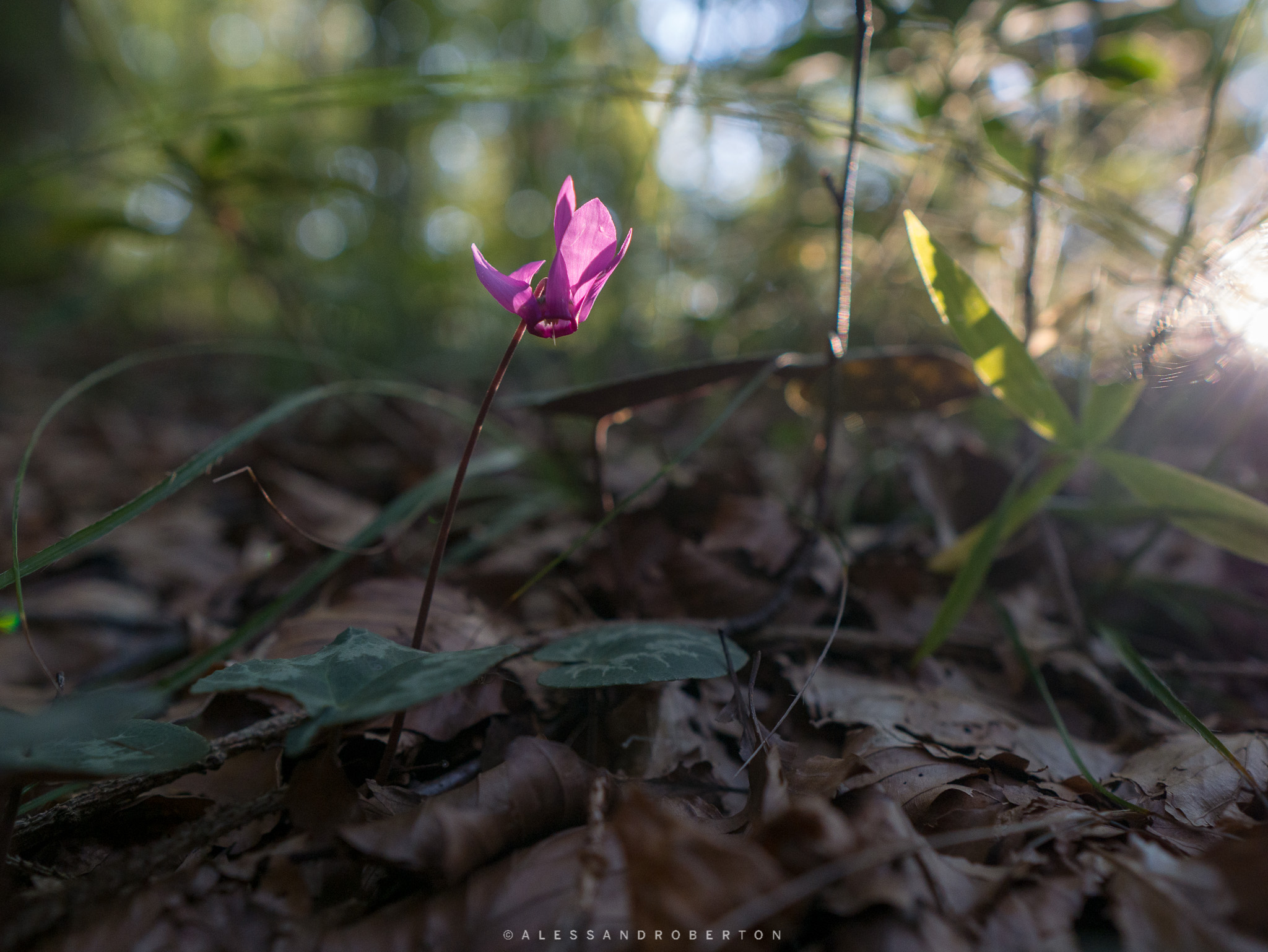 Uno sguardo al terreno ed ecco un fiore di ciclamino.