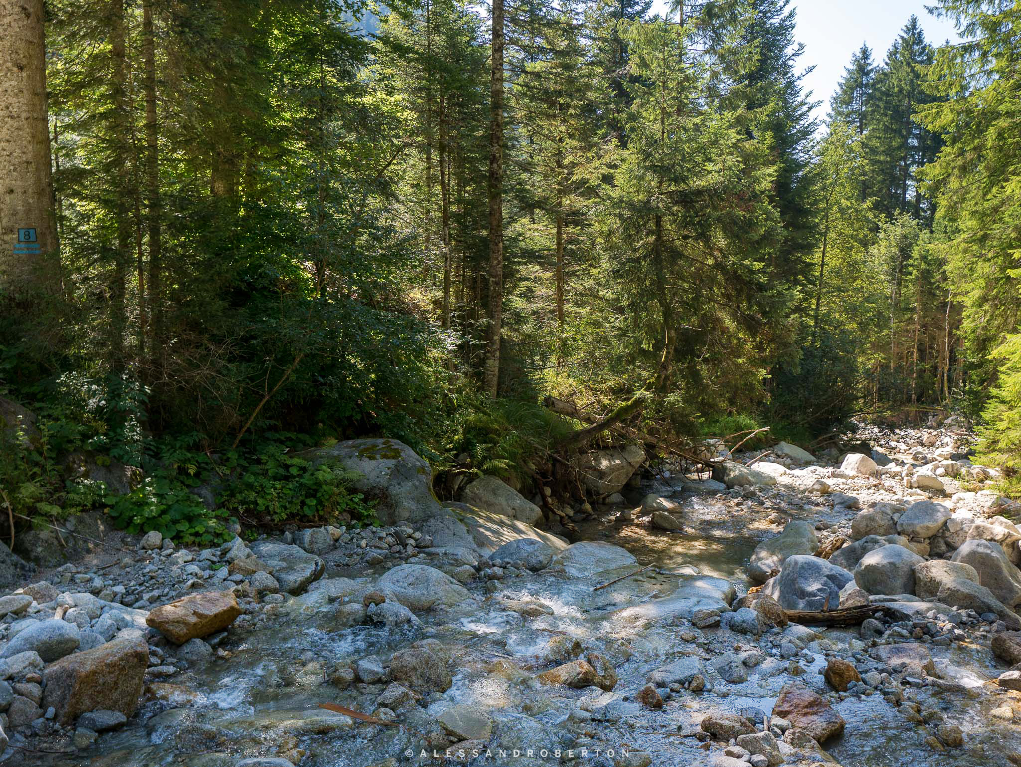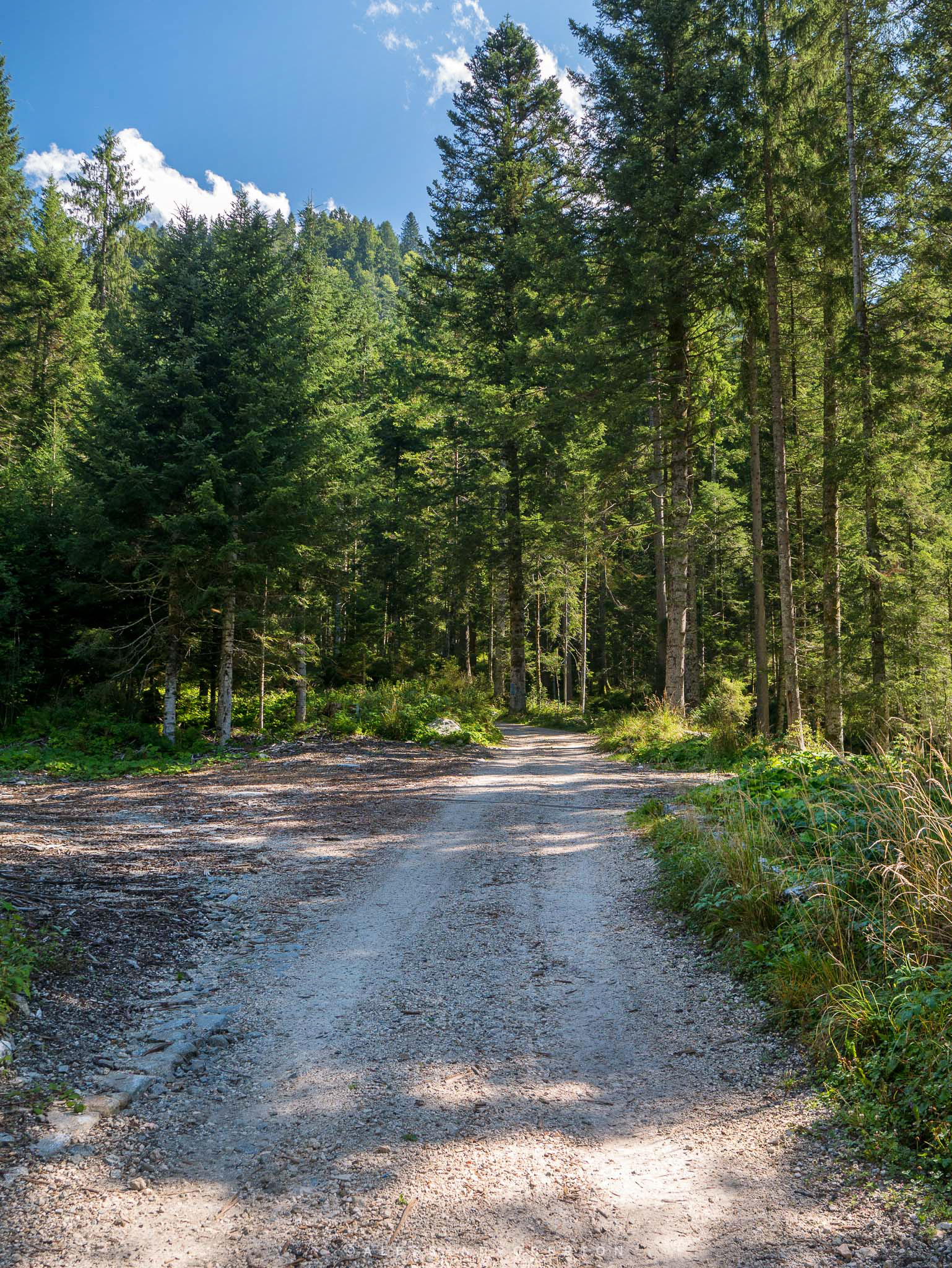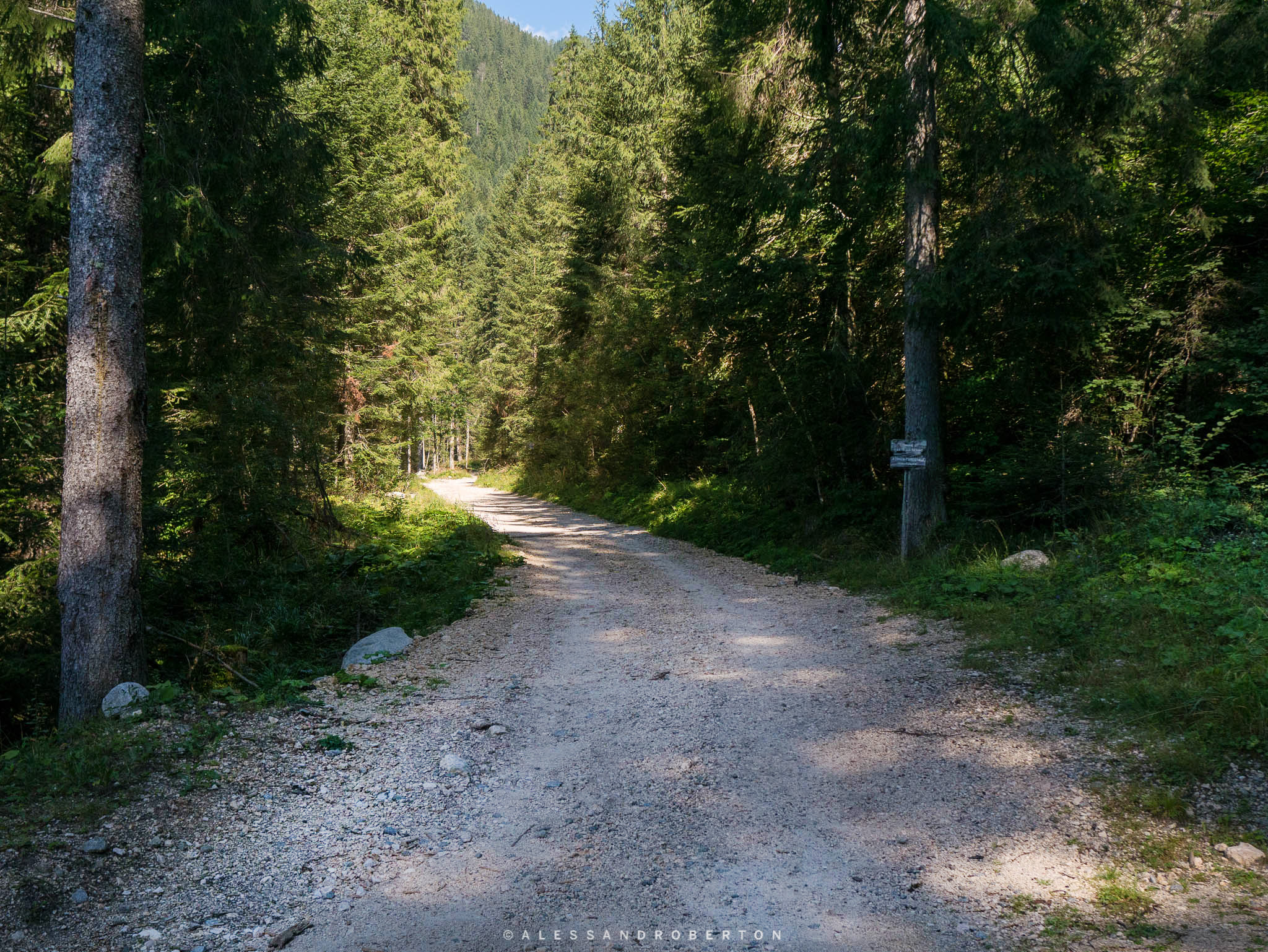 Stavo guidando in cerca di un bel posto dove pranzare al sacco e proseguendo lungo una strada immersa nel verde degli abeti e costaggiata da un ampio torrente, sono giunto in questa valle molto bella.