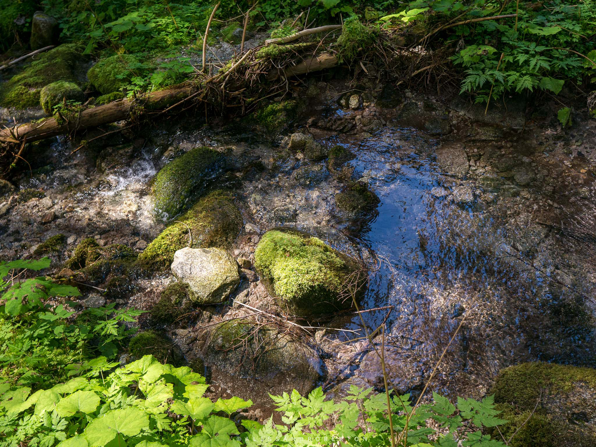 A simple stream in the woods, embellished with moss and sunbeams, create wonderful colors, which I could not stop taking pictures of.