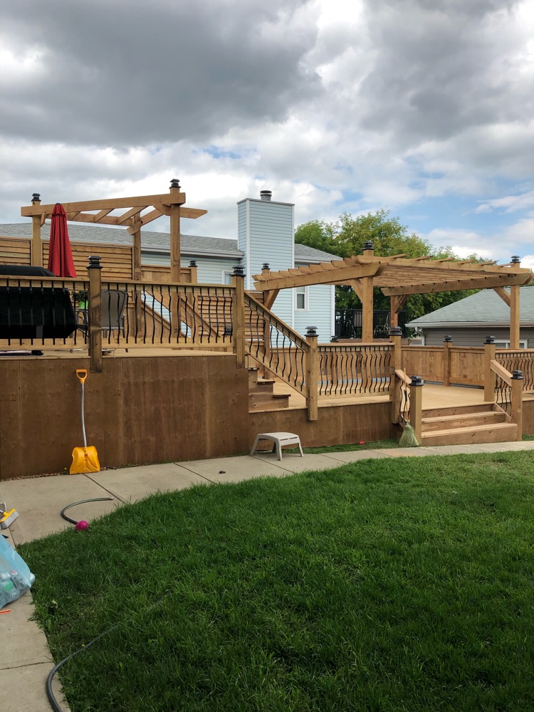 I have been working on a lot of small projects and this deck (it only took a week) is one of them, but by far the coolest. It is 41’ long by slightly over 16’ wide. It has 3 levels, 2 pergola’s, a privacy wall and solar powered lights. Enjoy the photo and let me know what you think... and remember... I will build you a deck for Steem.