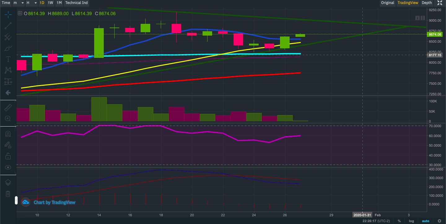 No post de hoje, farei outra análise técnica do preço do BTC, com base na ferramenta clássica de médias móveis exponenciais, canais de tendência e RSI.