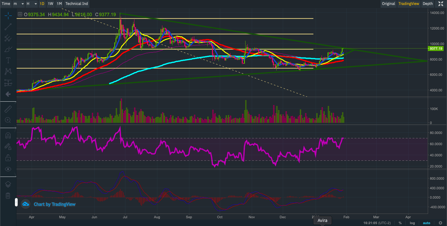 No post de hoje, farei outra análise técnica do preço do BTC, com base na ferramenta clássica de médias móveis exponenciais, canais de tendência e RSI.