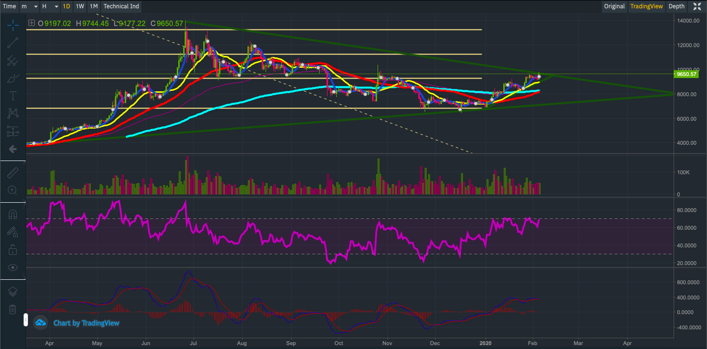 No post de hoje, farei outra análise técnica do preço do BTC, com base na ferramenta clássica de médias móveis exponenciais, canais de tendência e RSI.