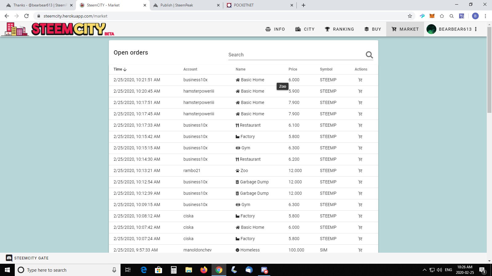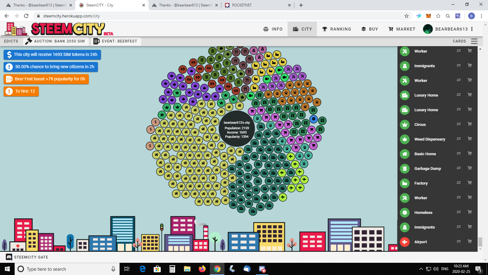 The positive is that the market place is vibrant and very quick within the UI. I often put up for sale a homeless worker for 1 BEER, and immigrants for 2 STEEMP only to pour it back into a new card. I am very pleased with the amount of activity so far and can't wait for the new packs to come out. If the market place is quick to sell and move NFT cards, it's healthy.