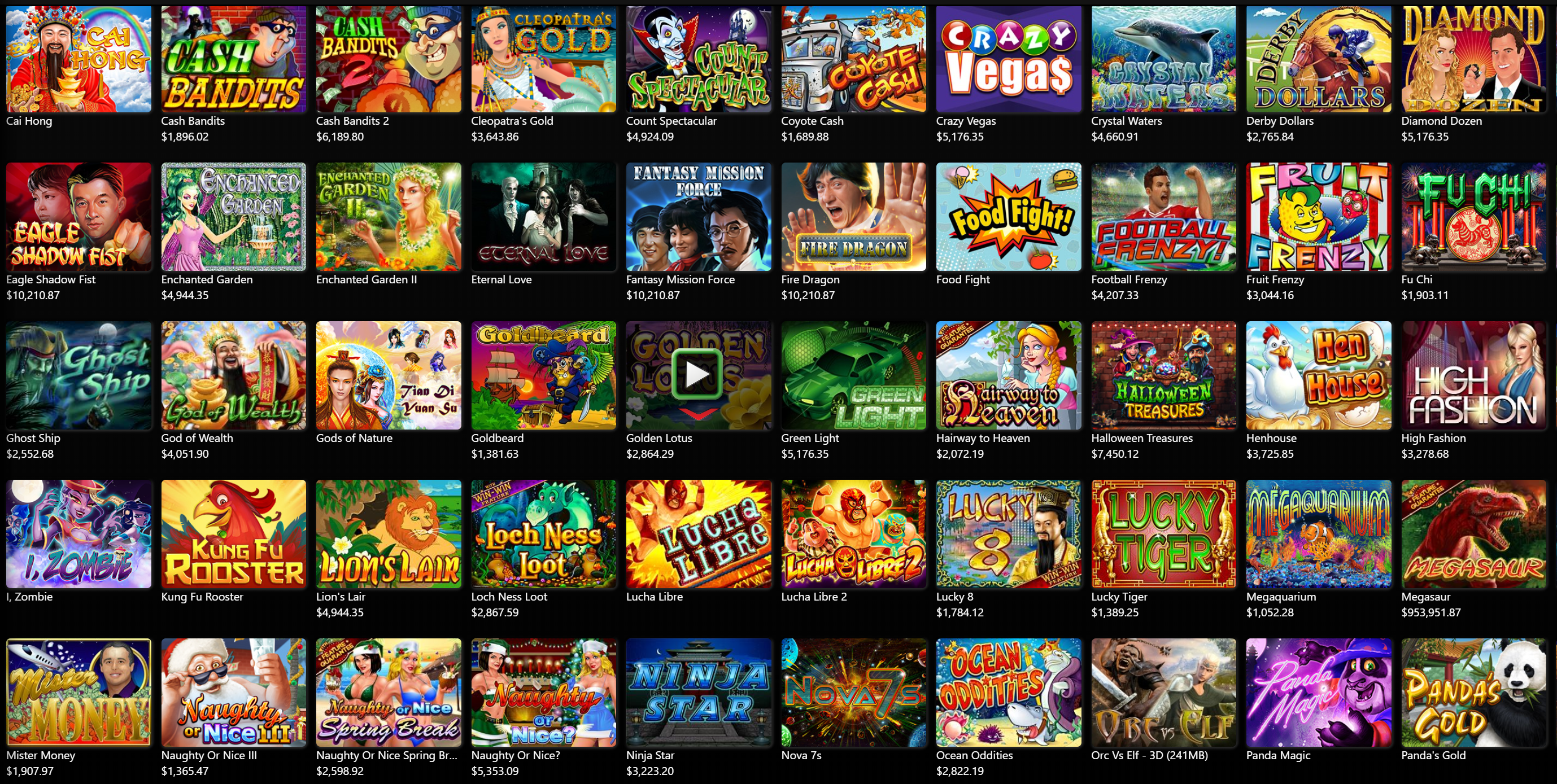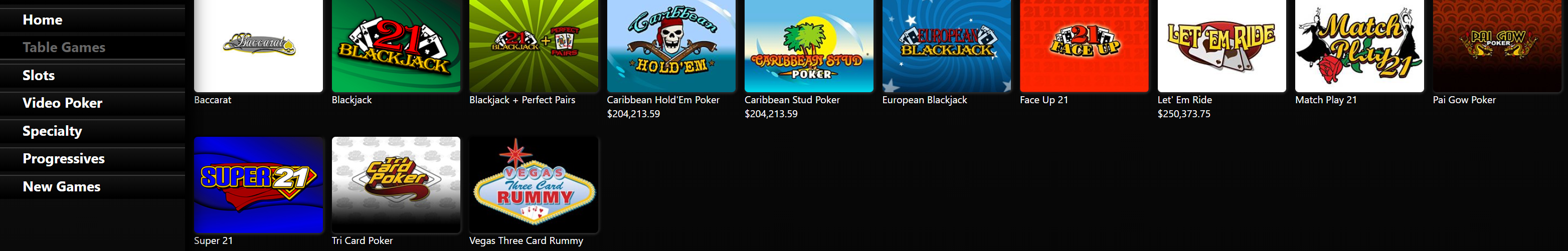 Tons of Table Games, Video Poker, Specialty, Progressive, and virtual slot machines.