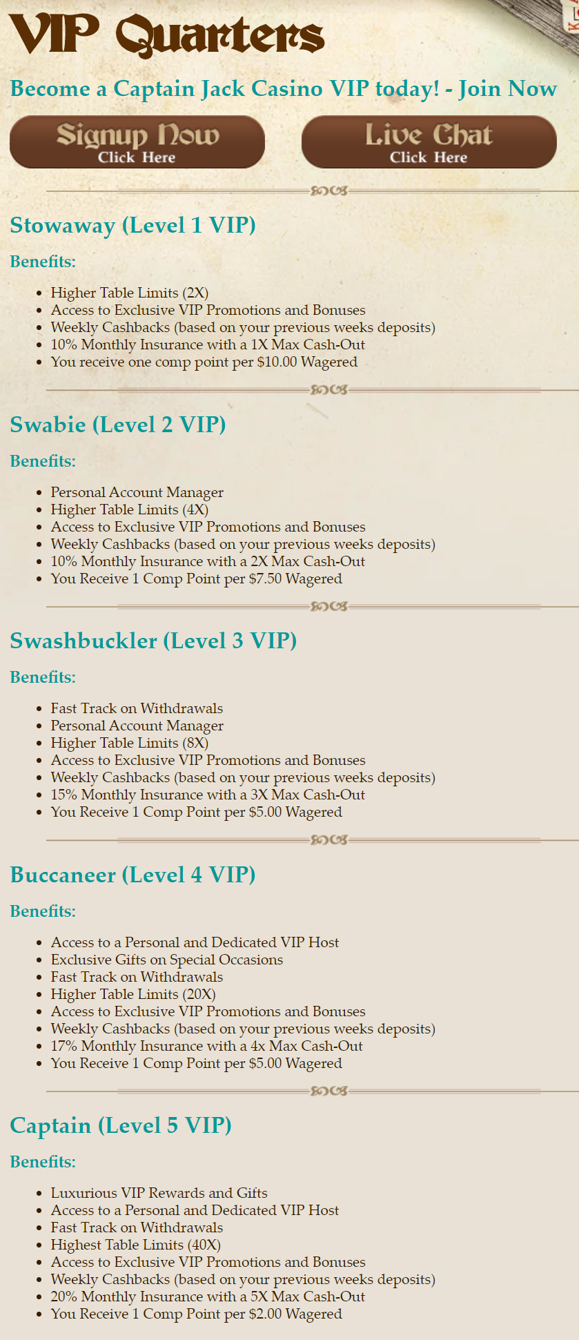 Captain Jack has a reputation for excellent customer service. We are fully committed to all our players. Our highly trained customer service staff will respond quickly and efficiently to any query, concern or request, contact us now to enjoy the best customer service in the business.