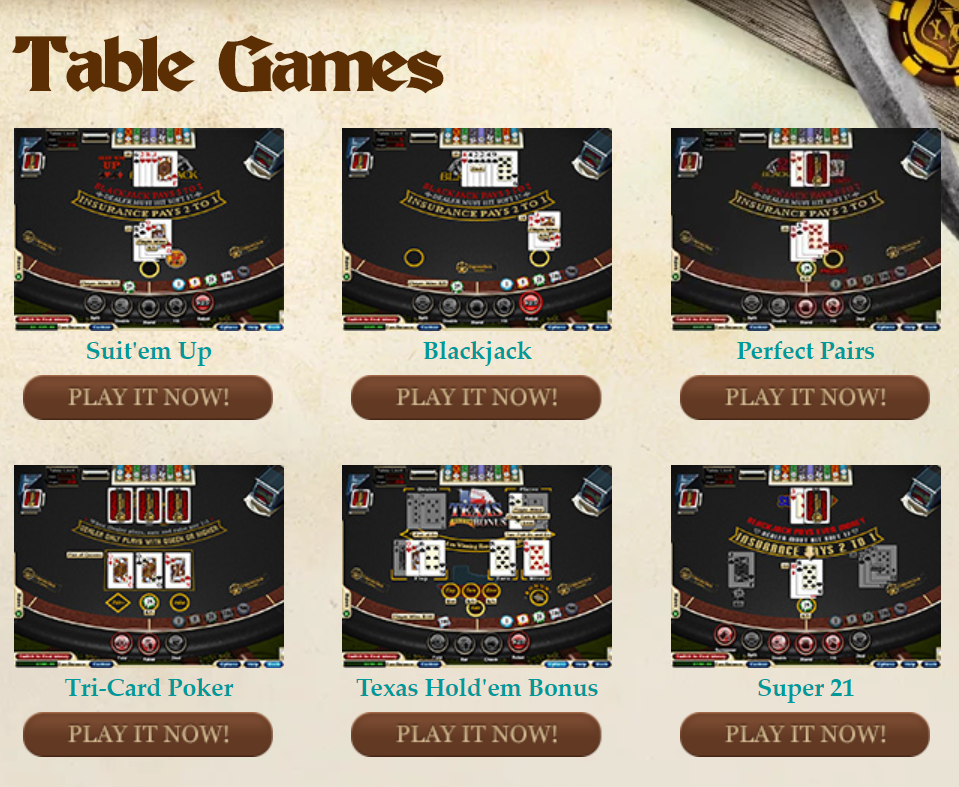 Baccarat, Blackjack European, Blackjack Face, Up 21, Let'em Ride, Match Play, 21 Pai Gow there's so many to choose from.