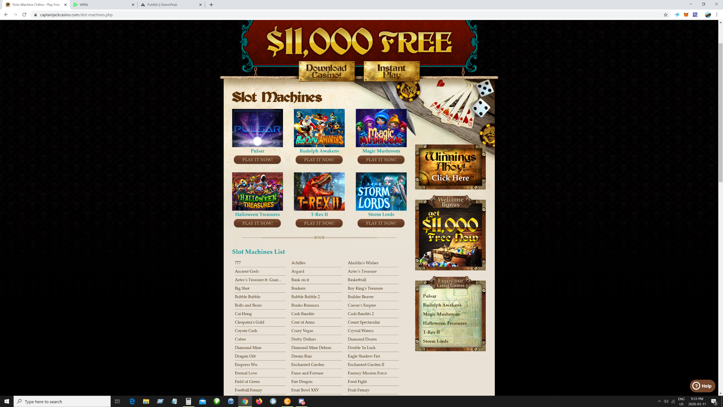 There's over 162 Slots you can play at this incredible e-gaming casino.
