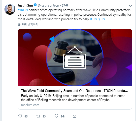 이 사건은 트론과 무관하므로 트론 투자자 분들은 신경안쓰셔도 됩니다
