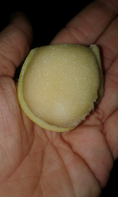 Once the fruit is pealed, you pop the entire thing into your mouth and suck the fruit off the pip, the fruit is made up of tons of thin fibrous hairs attached to the pip, enveloping the divine nectar, much like eating the last mango off a fibre mango pip, but not as course. In fact it has quite a gelatinous feel to it.