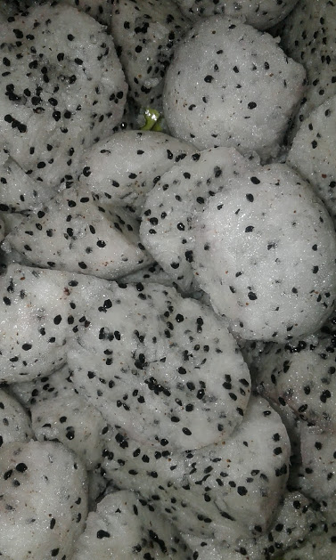 I started with the dragon fruit. Firstly the fruits were washed and then pealed. After that I simply chopped the fruit up into large chunks, then put them to one side.