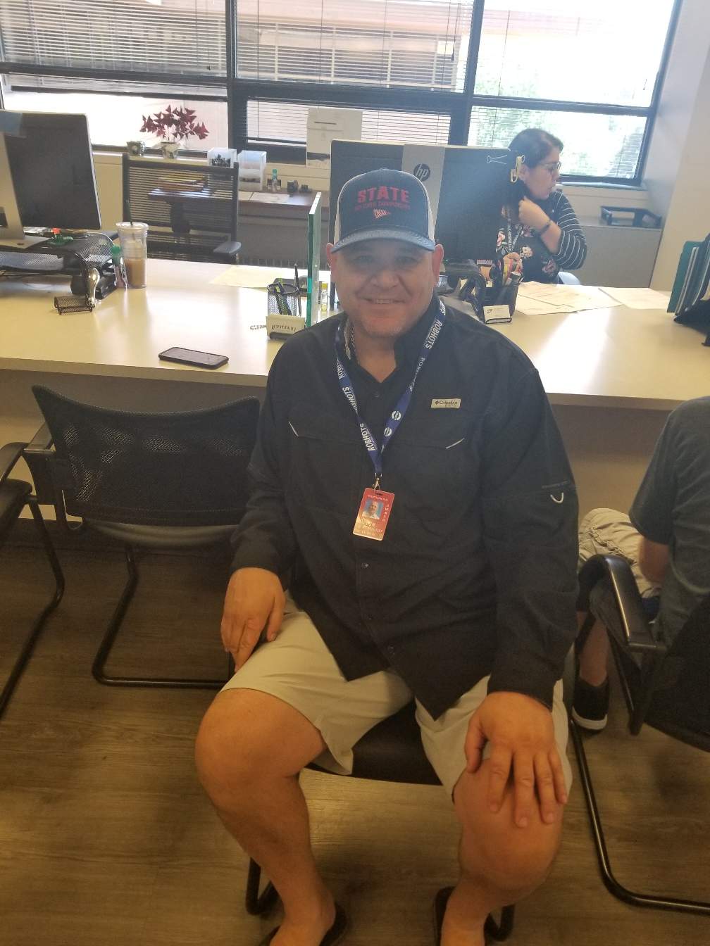 First they take your picture and make a plastic ID card for you.