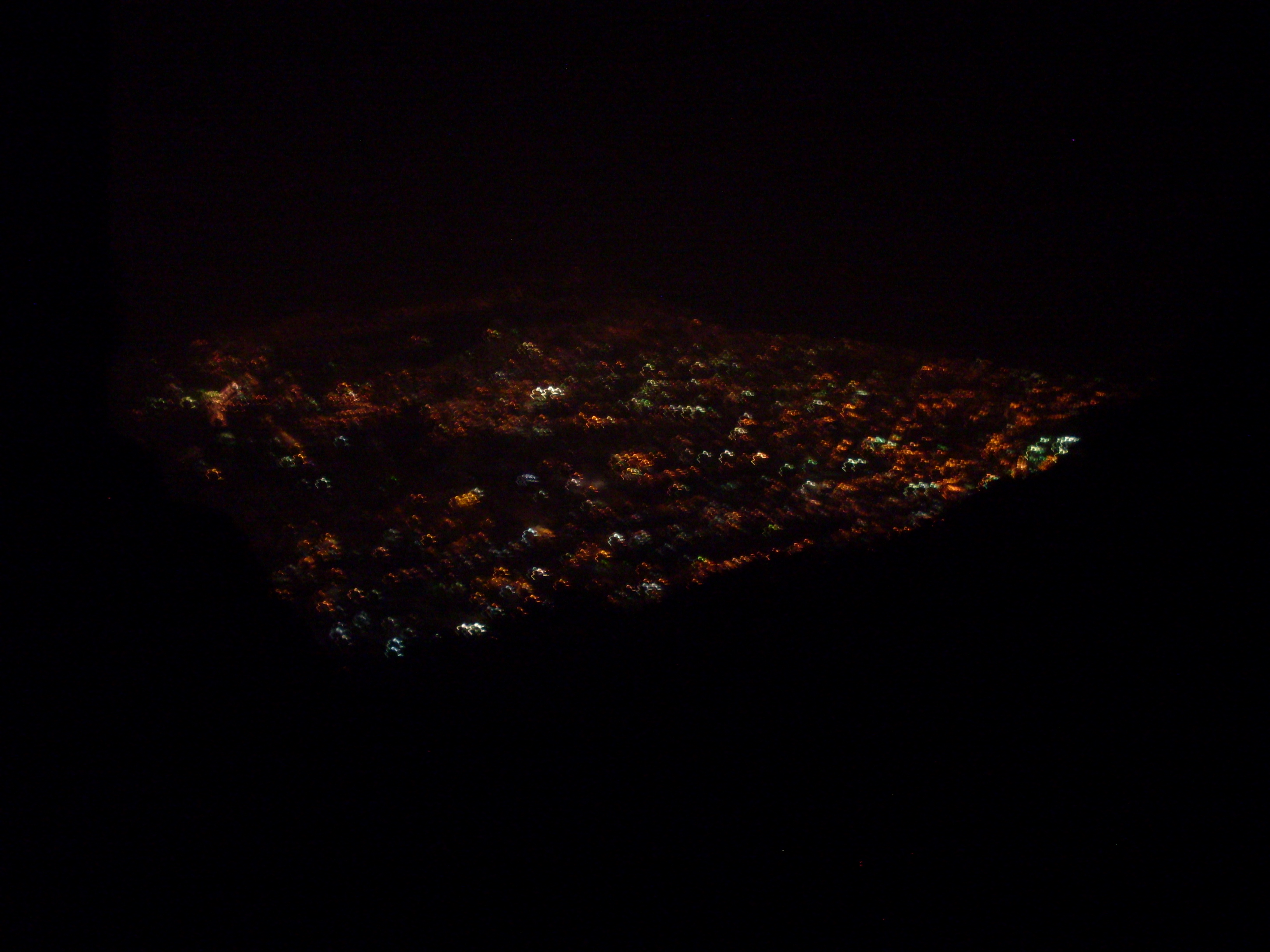Las luces de la ciudad, allá abajo, son lo único que se observa.