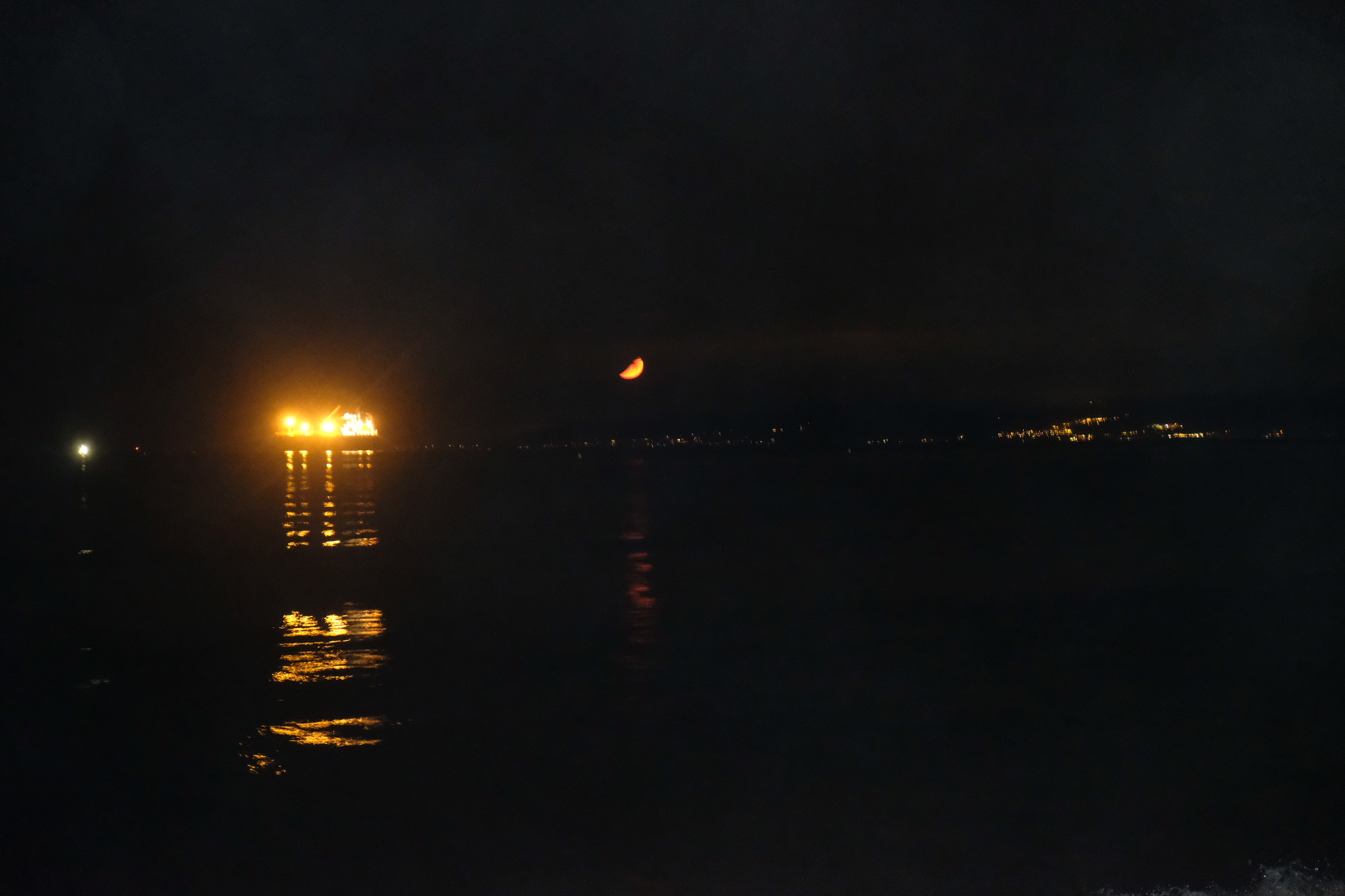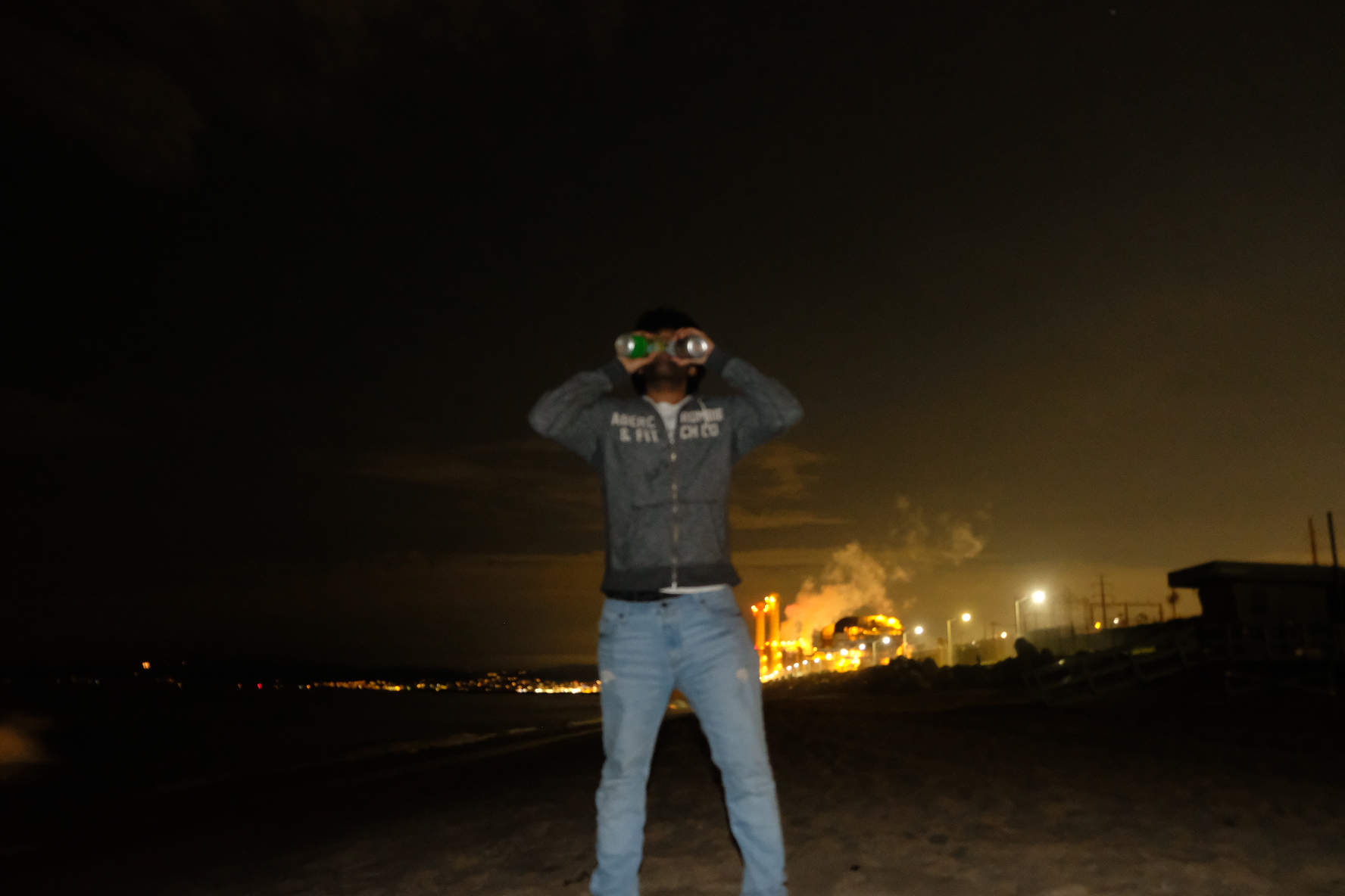 So this was a a night at Hermosa Beach I go up there to do various exercises to complete challenges on Lympo and ActiFit. I just happened to bring my camera and caught a interesting moon shot. If I had a stronger lens I would have captured the full effect.