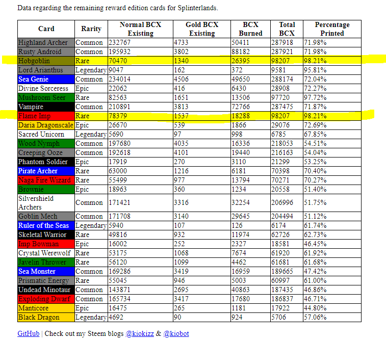If you see the table you can clearly note that the two reward cards Hobgoblin & Flame Imp have been racing to run out and the competition is going crazy. At one moment Flame Imp takes the lead, the other Hobgoblin crosses it. So lets see Which One Will run out first.