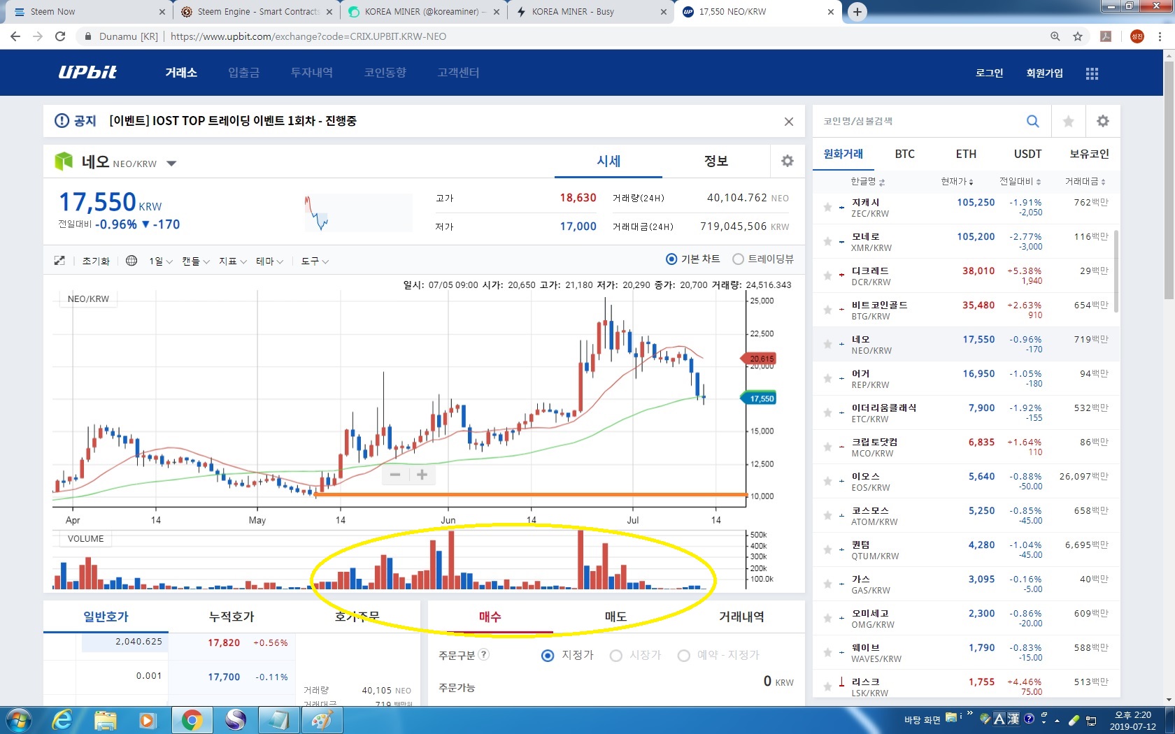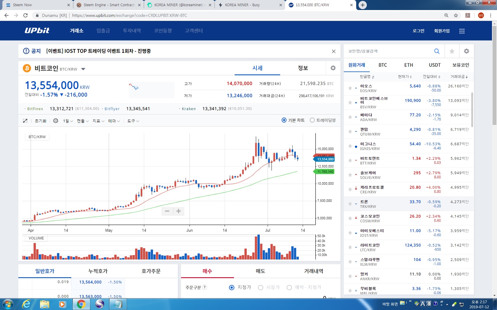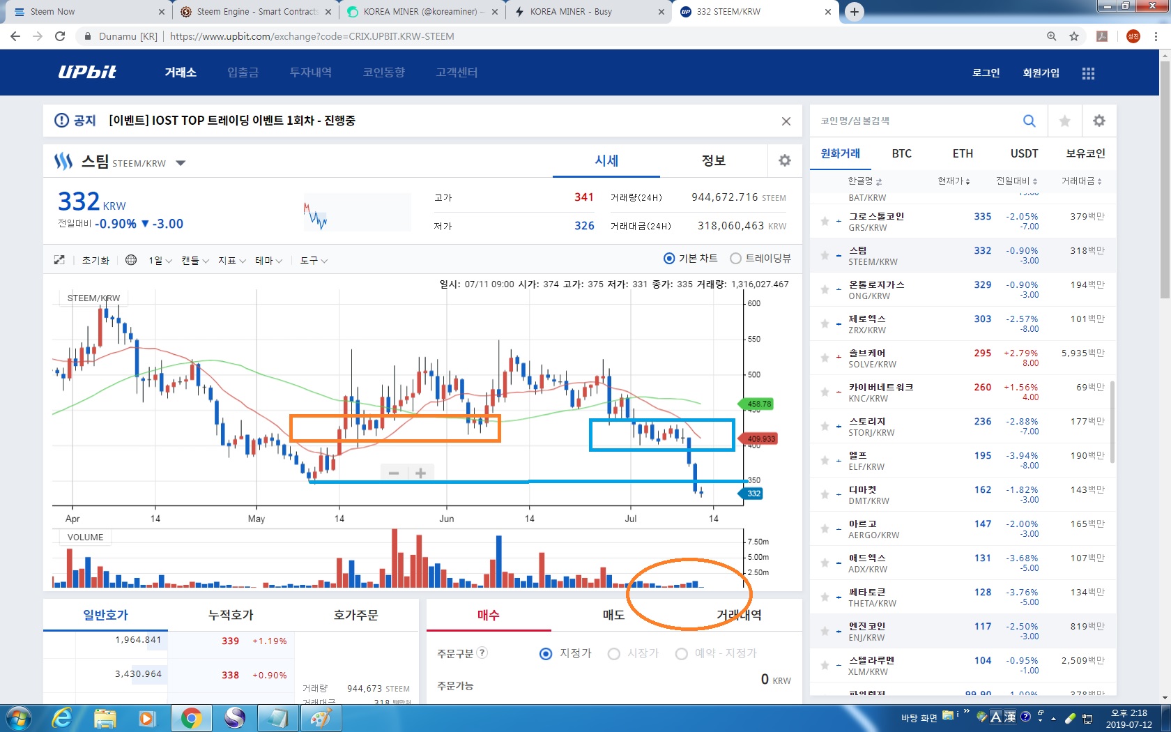 MINER코인이야기) 스팀은 매수시기인가