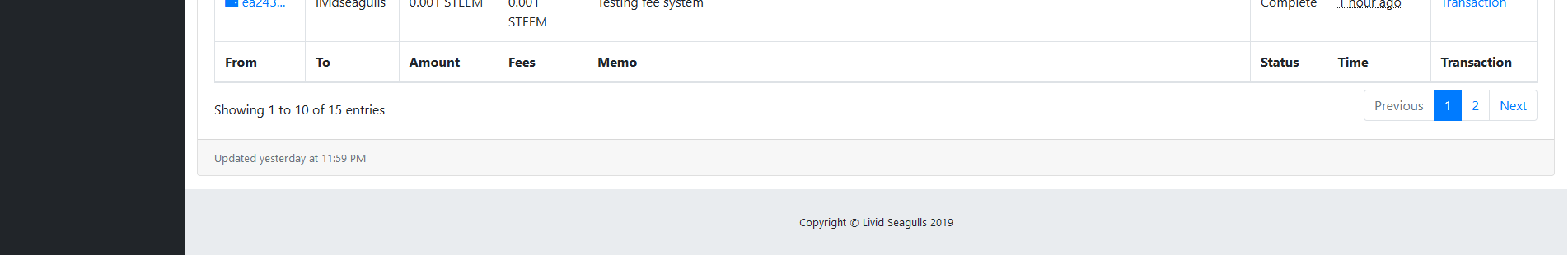 Then we have the chart and table detailing our balance and transactions over time (and the status of those transactions)!