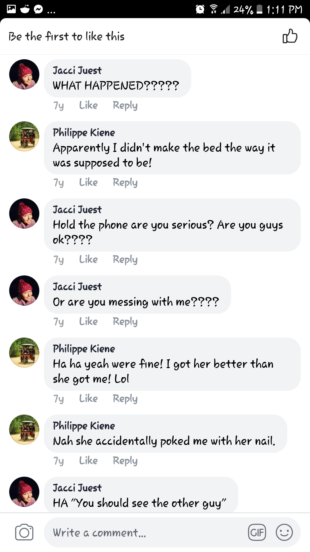 I felt absolutely terrible and now that I was awake knew my chances of him finishing what he started were slim to none. But what I didn't know what how much this guy was going to milk his injuries for.... I woke up the following morning to a tag on Facebook.