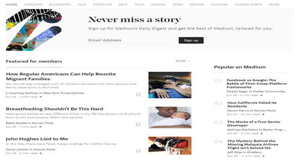 Medium, a comparison to a standard blogging site.