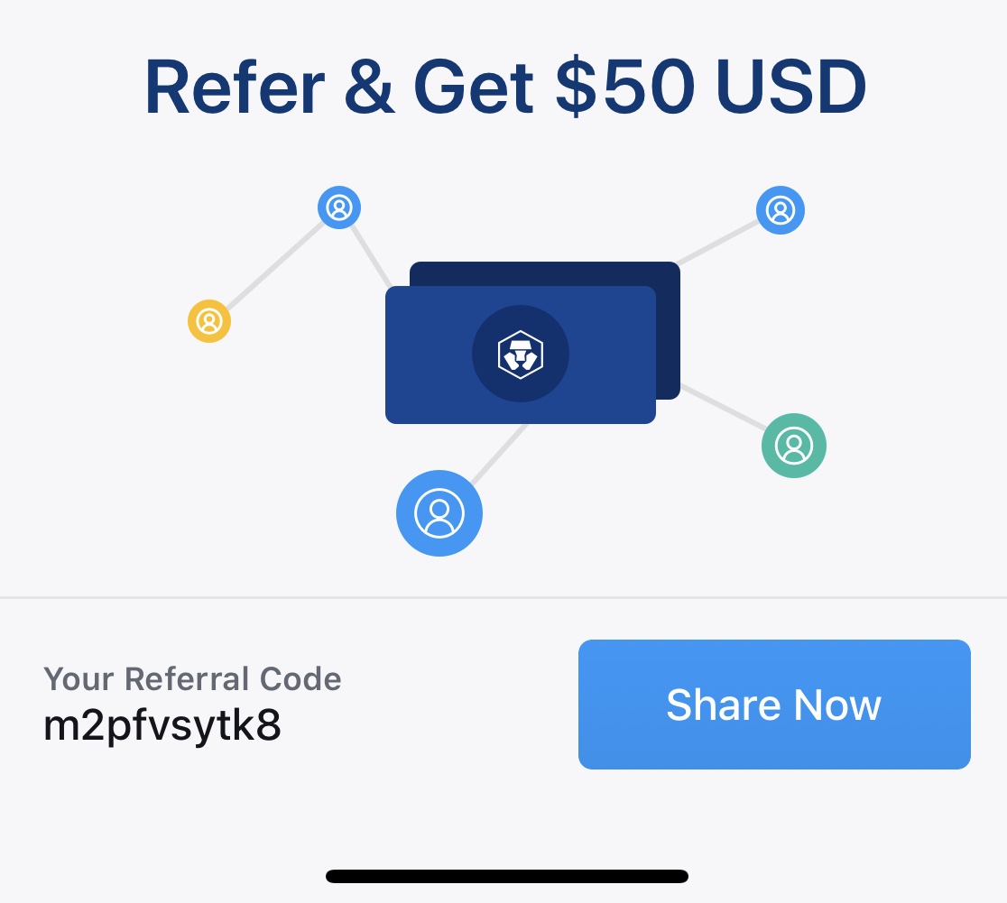 Use my referral link https://platinum.crypto.com/r/m2pfvsytk8 to sign up for Crypto.com and we both get $50 USD :)