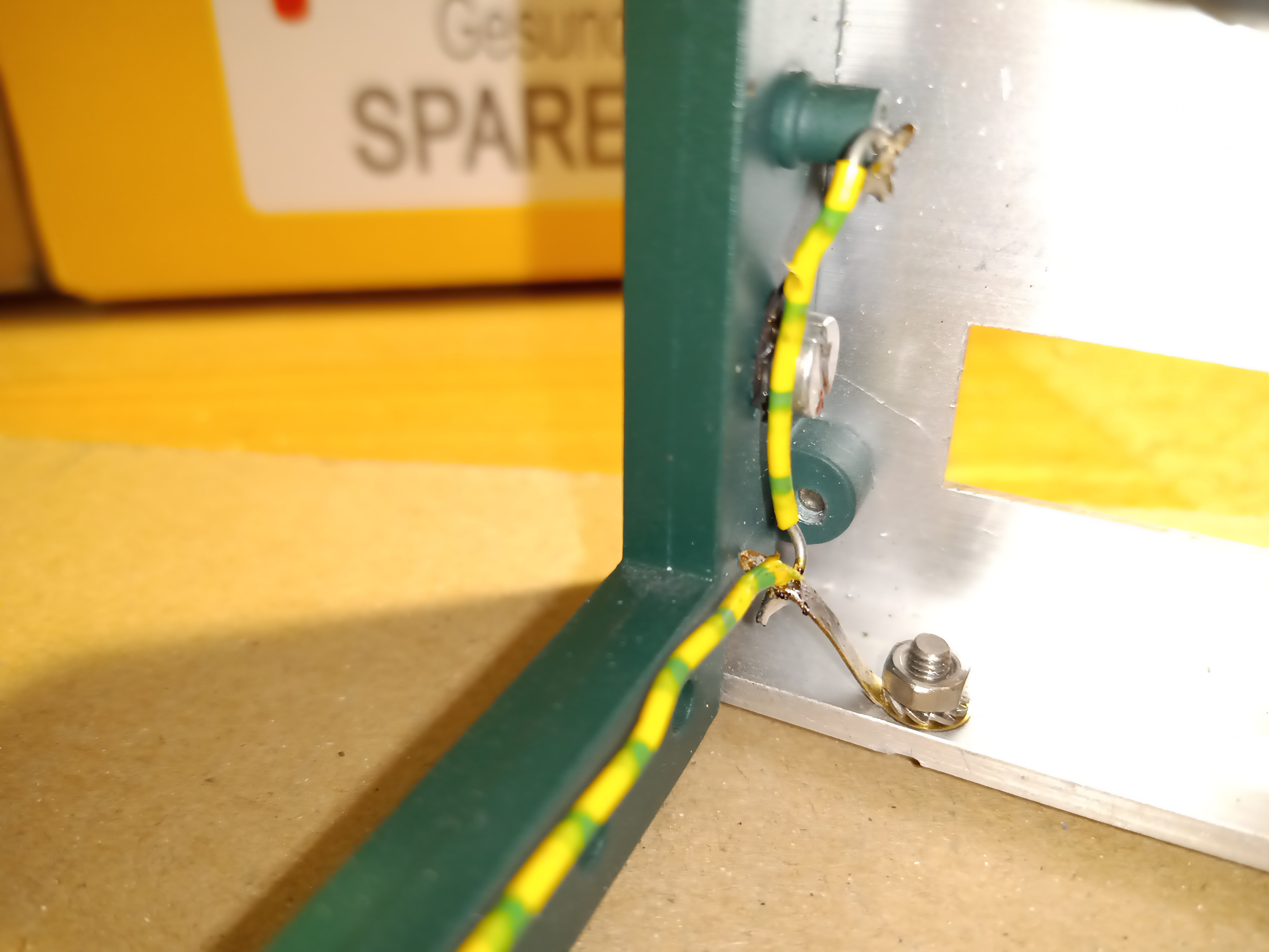 Hier ebenfalls der Schutzleiter, verbunden mit Seitenteil und Vorderfront.