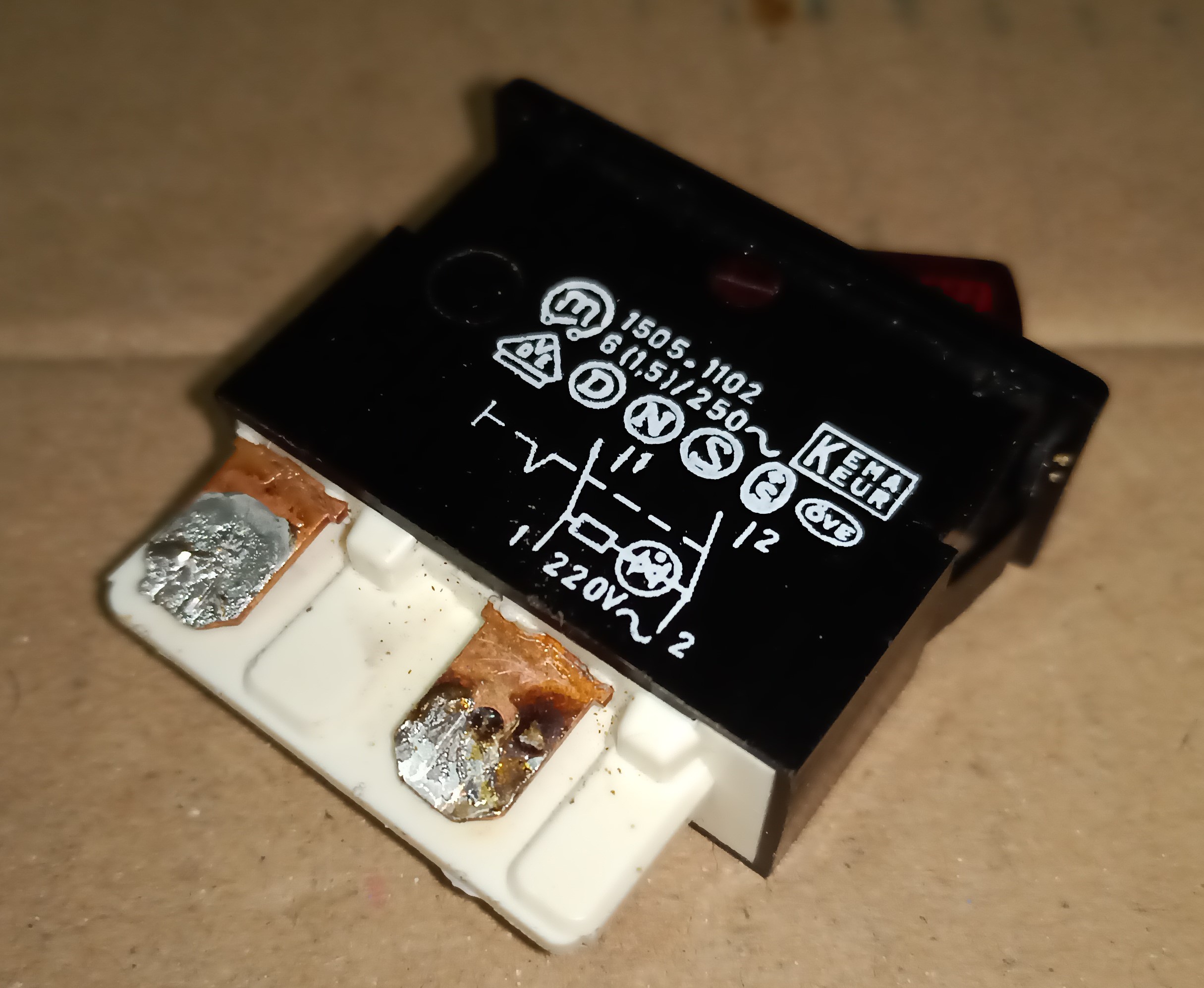 Unfortunately, the original switch was soldered in instead of using plug contacts. The soldering heat must have damaged the switch when unsoldering. Unfortunately there is hardly any replacement in the required size on the Internet. All rocker switches today have smaller installation dimensions.