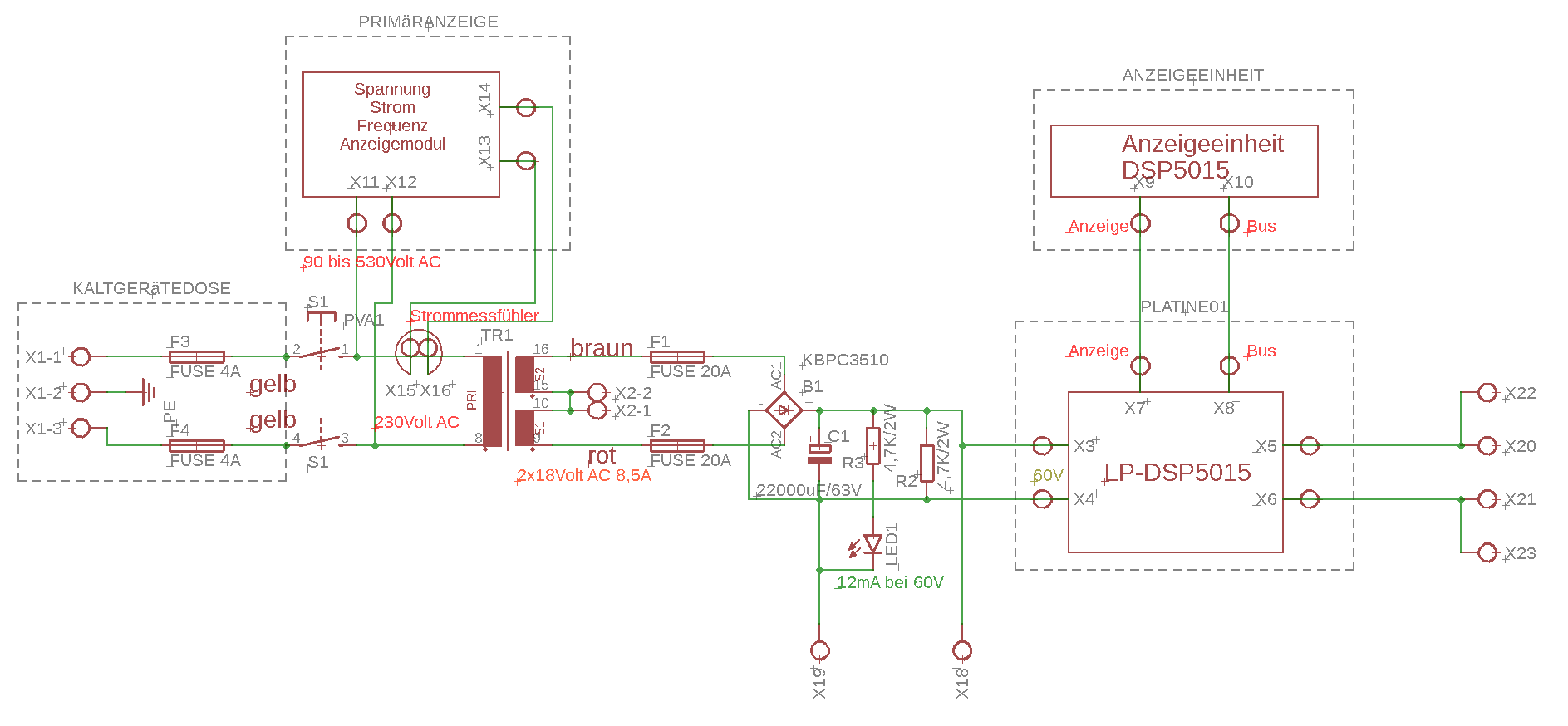 Die drei X1 Kontakte mit der Sicherung stellen die Kaltgerätesteckdose dar.