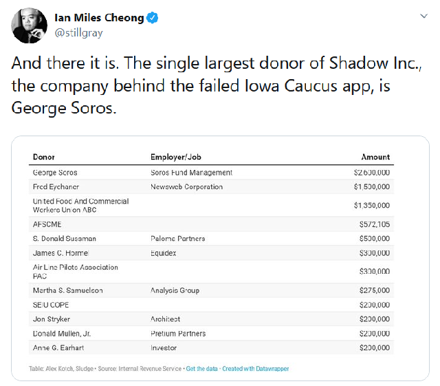 Shadow, a tech firm that describes itself as a group that creates “a permanent advantage for progressive campaigns and causes through technology,” is the company that created the Iowa Democratic Party’s app, according to <a href="https://www.nytimes.com/2020/02/03/us/politics/iowa-caucus-app.html"The New York Times. At least the COO, <a href="https://www.linkedin.com/in/gerard-niemira-aaa9b73/"CEO, <a href="https://www.linkedin.com/in/krista-davis-aa2016b6/"CTO and a senior <a href="https://www.linkedin.com/in/ahnarao/"product manager at Shadow all worked for the Hillary Clinton presidential campaign, according to LinkedIn profiles.