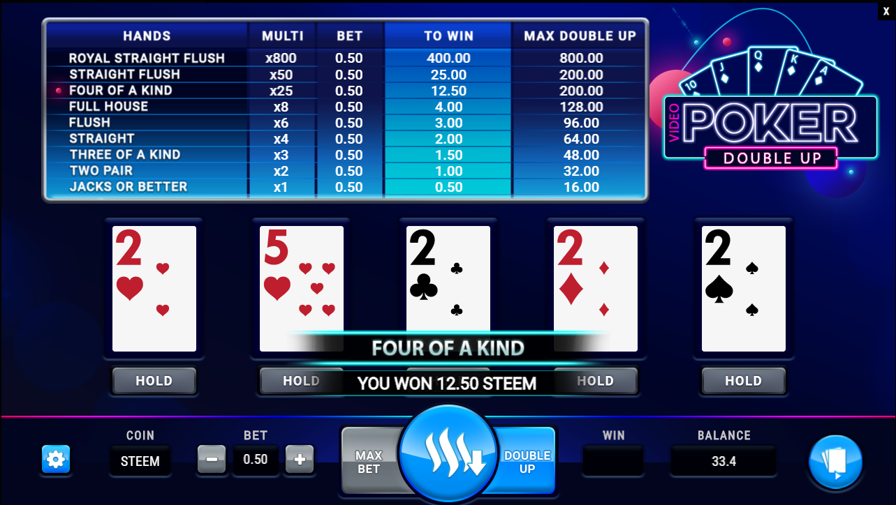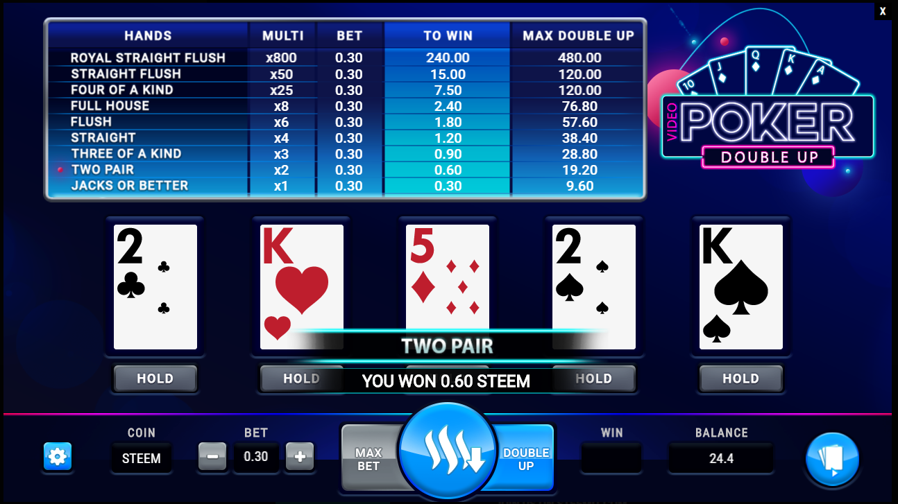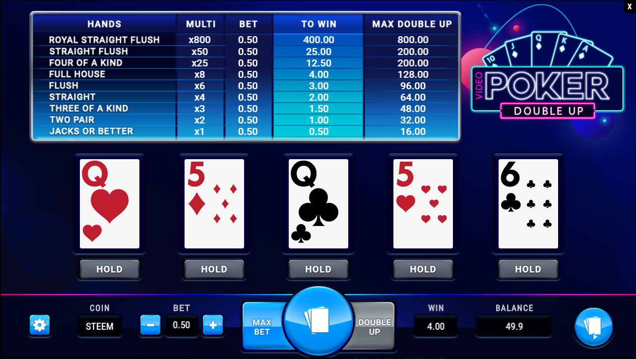 NEW GAME - Video Poker Double Up - STEEMSLOTGAMES.COM